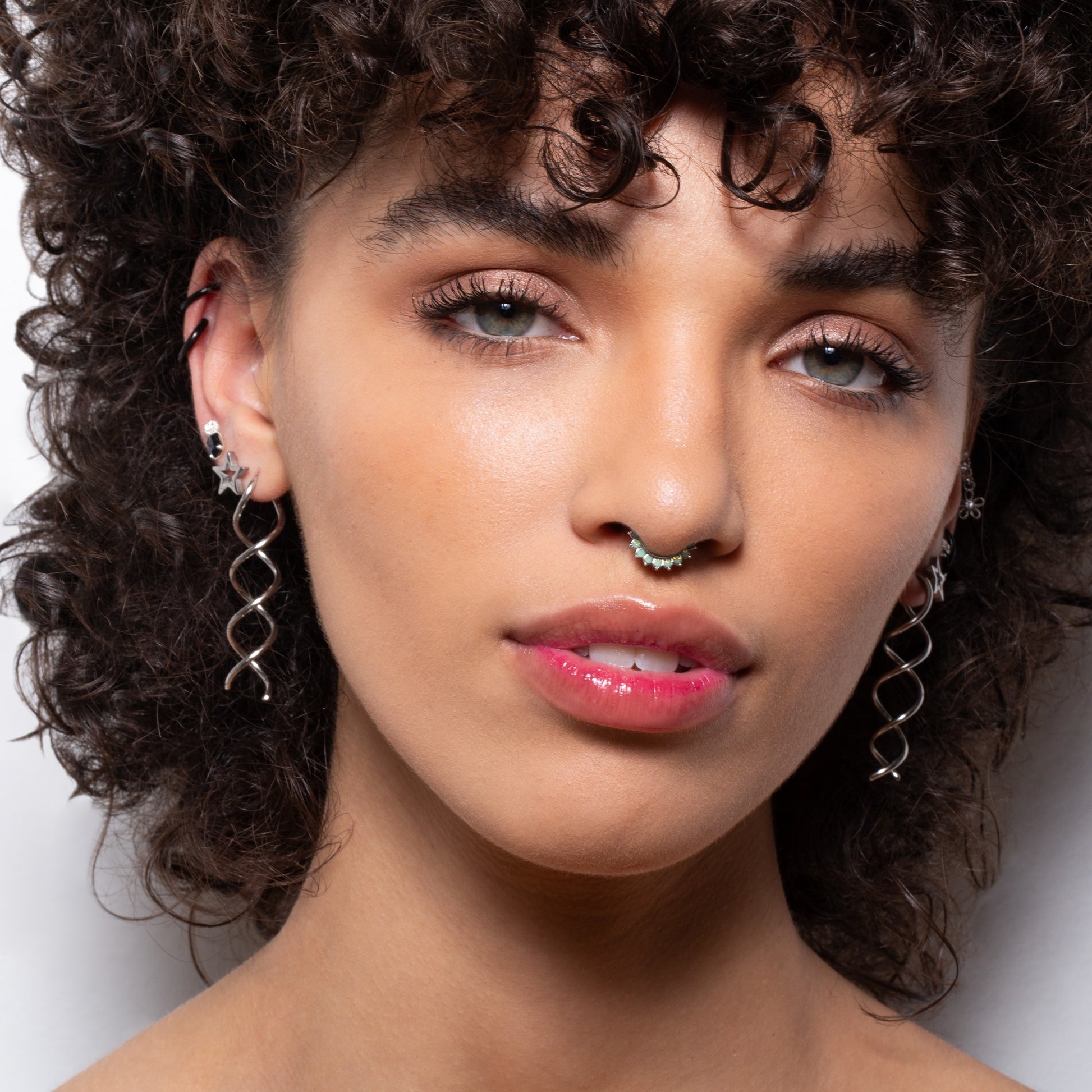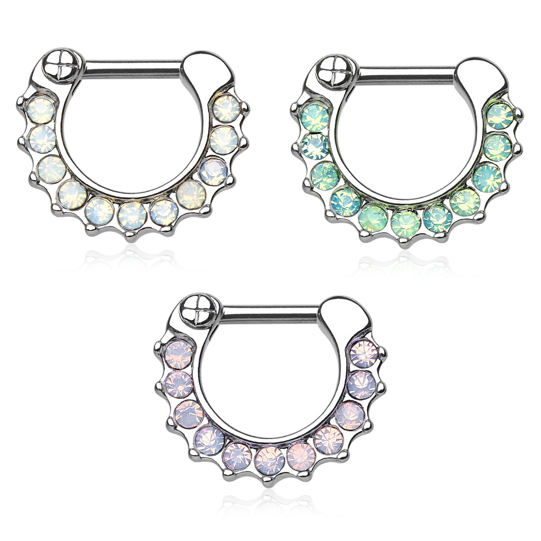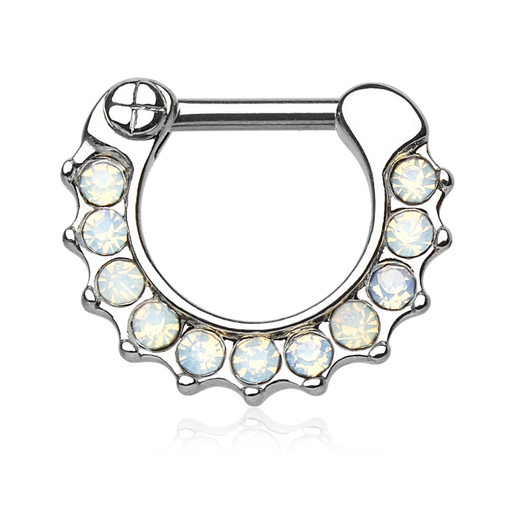 Paved Opalite Septum Clicker Ring - Stainless Steel