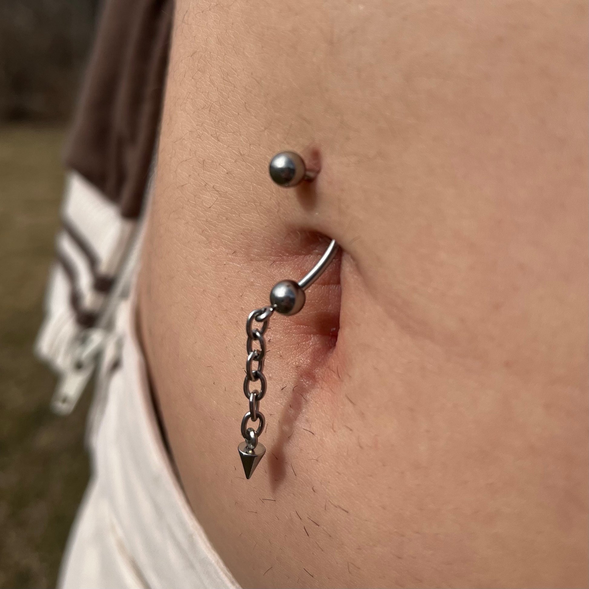 Dangling Spike Belly Button Ring - 316L Stainless Steel