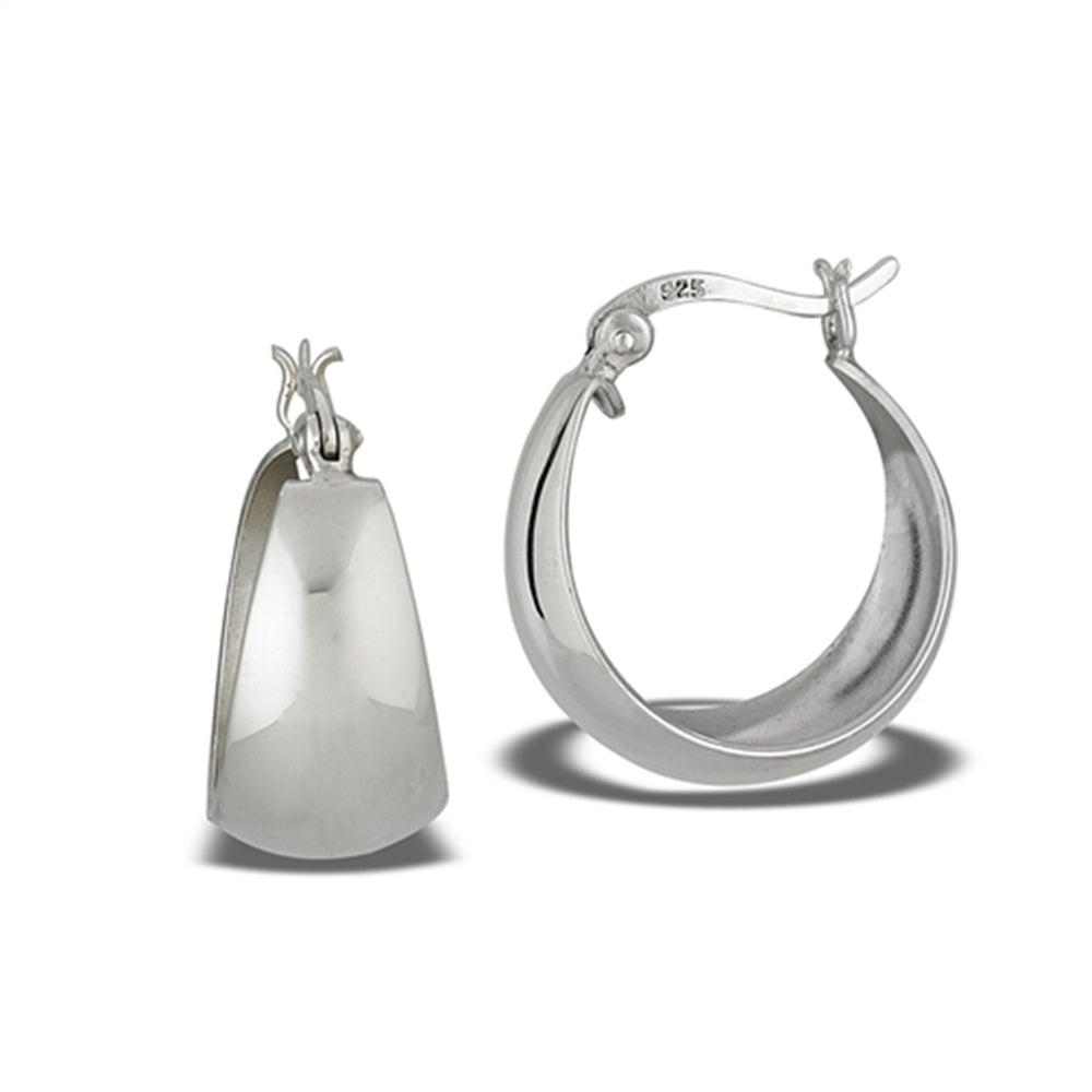 12mm Thick Convex High Polish Hoop Earrings - Pair - 925 Sterling Silver