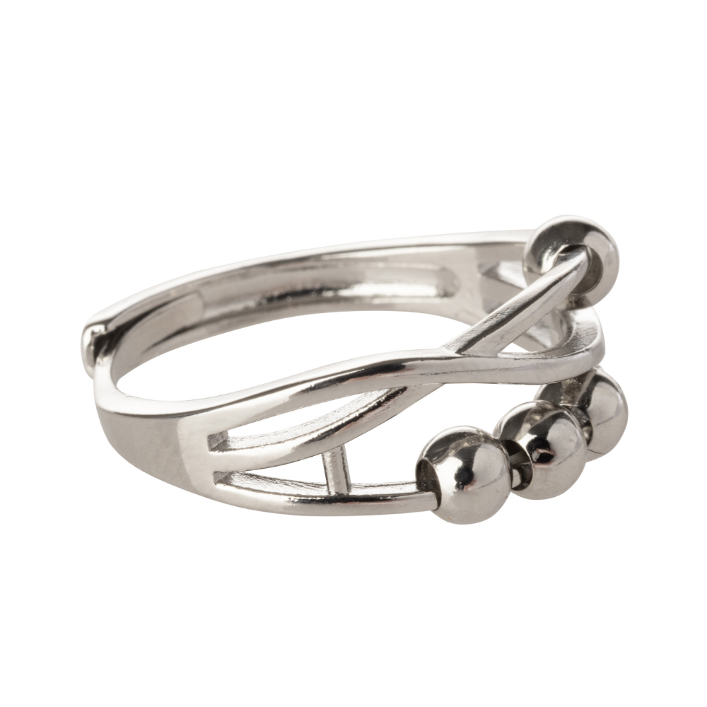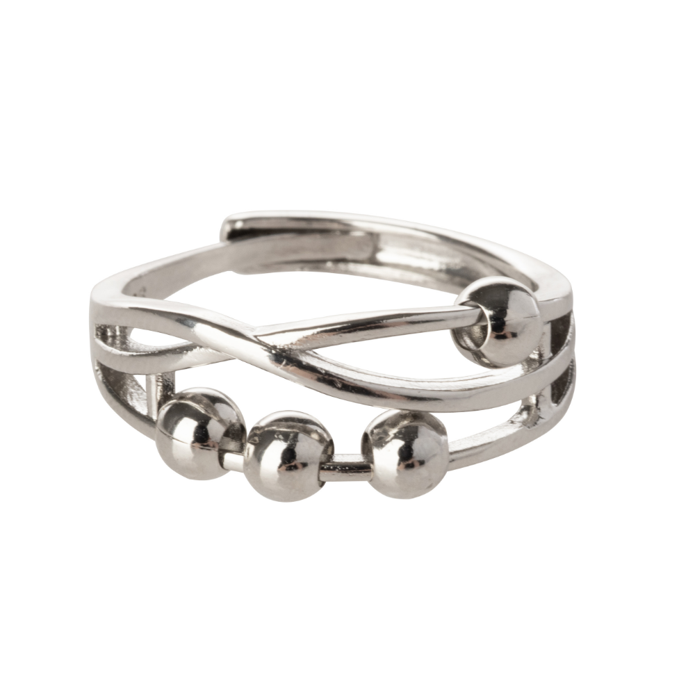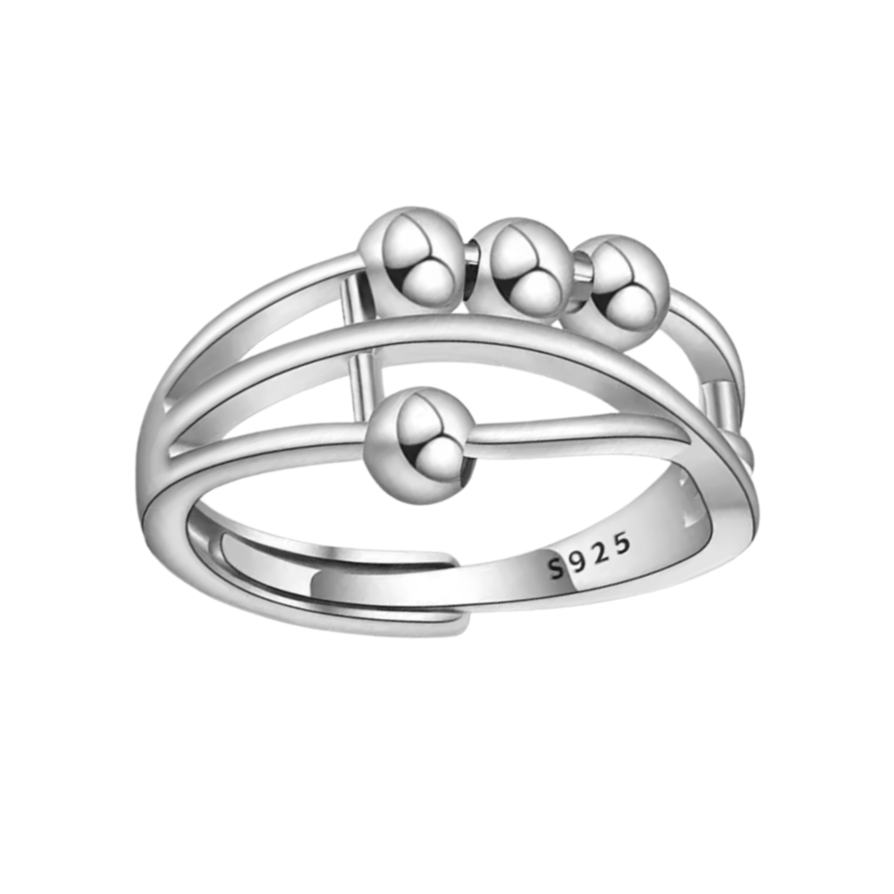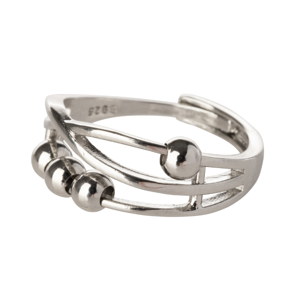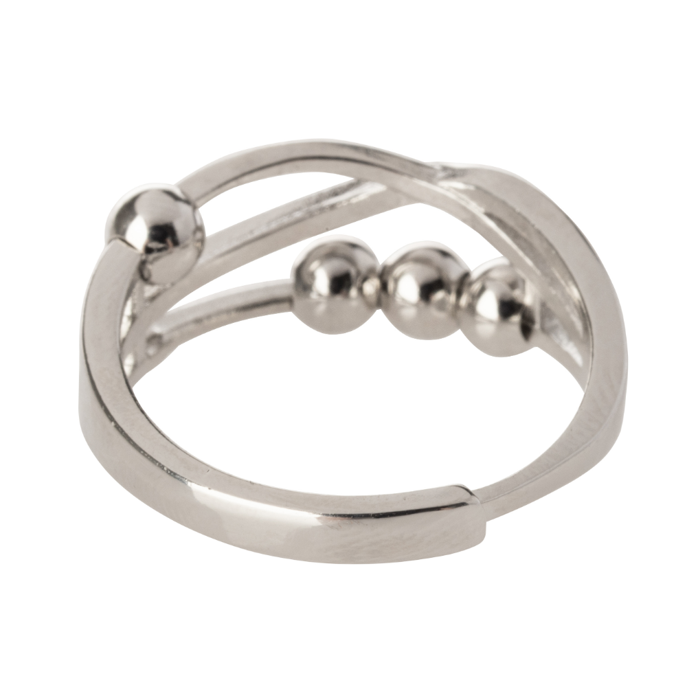 Beaded Criss Cross Design Adjustable Beaded Fidget Ring - 925 Sterling Silver