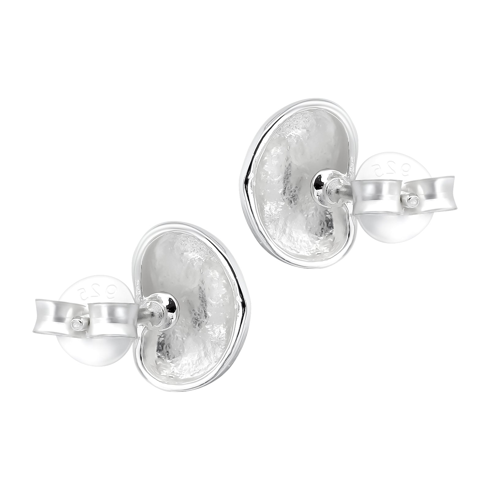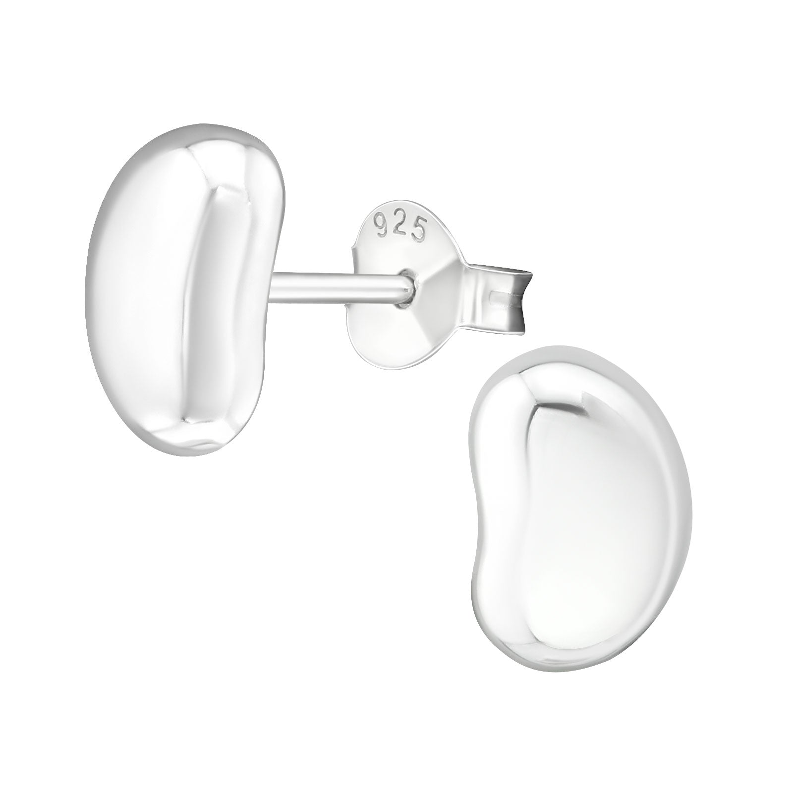 Bean Stud Earrings - Pair - 925 Sterling Silver