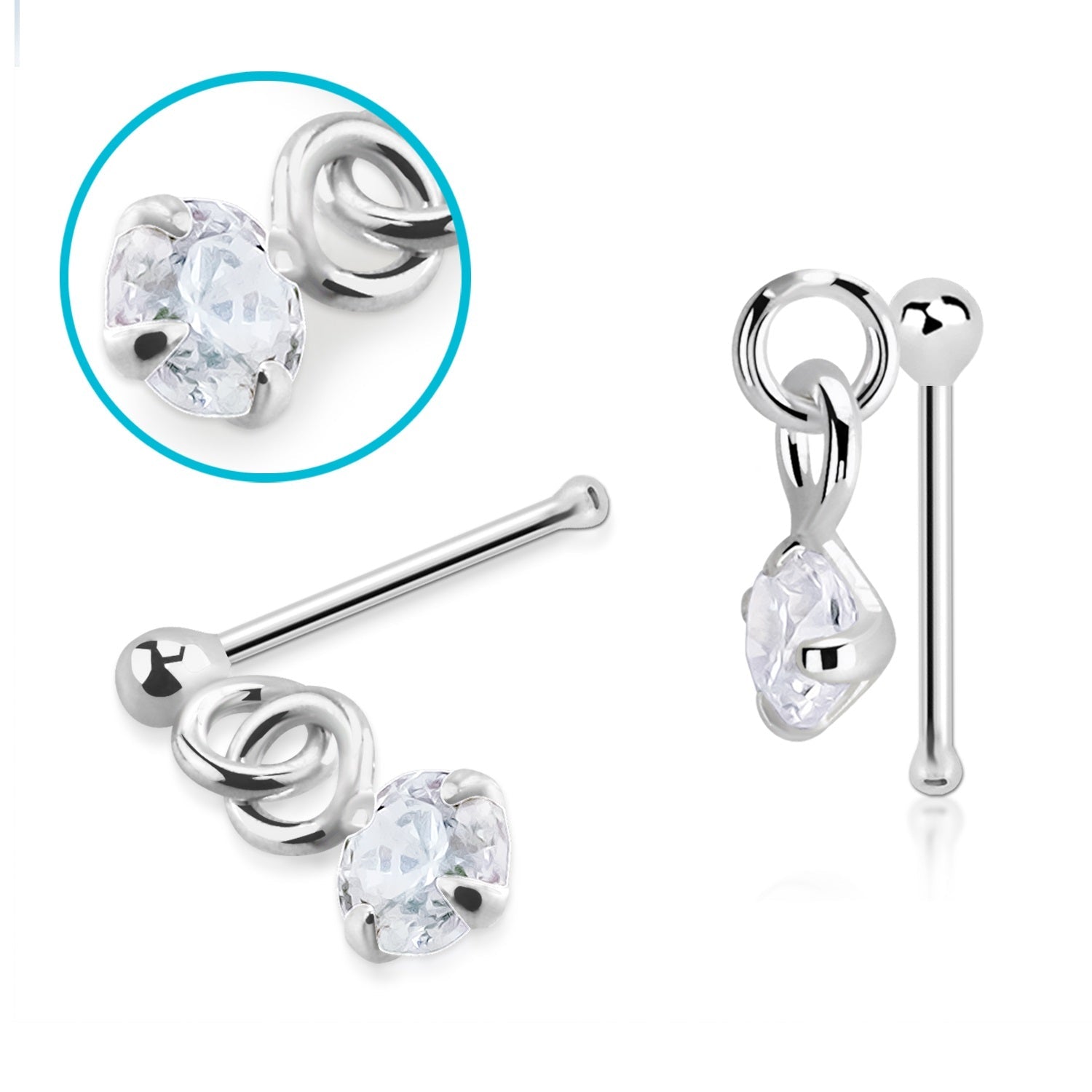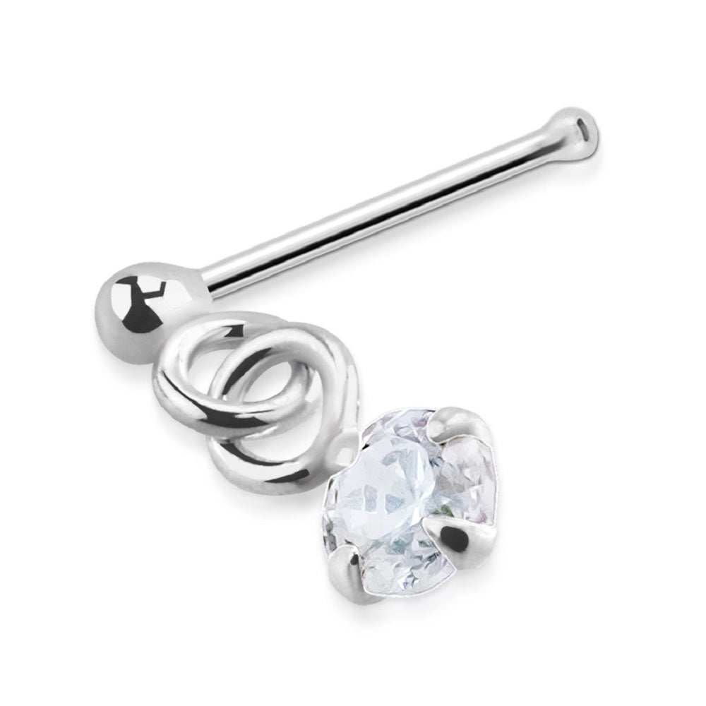 CZ Crystal Dangling Gem Nose Bone Stud - 925 Sterling Silver
