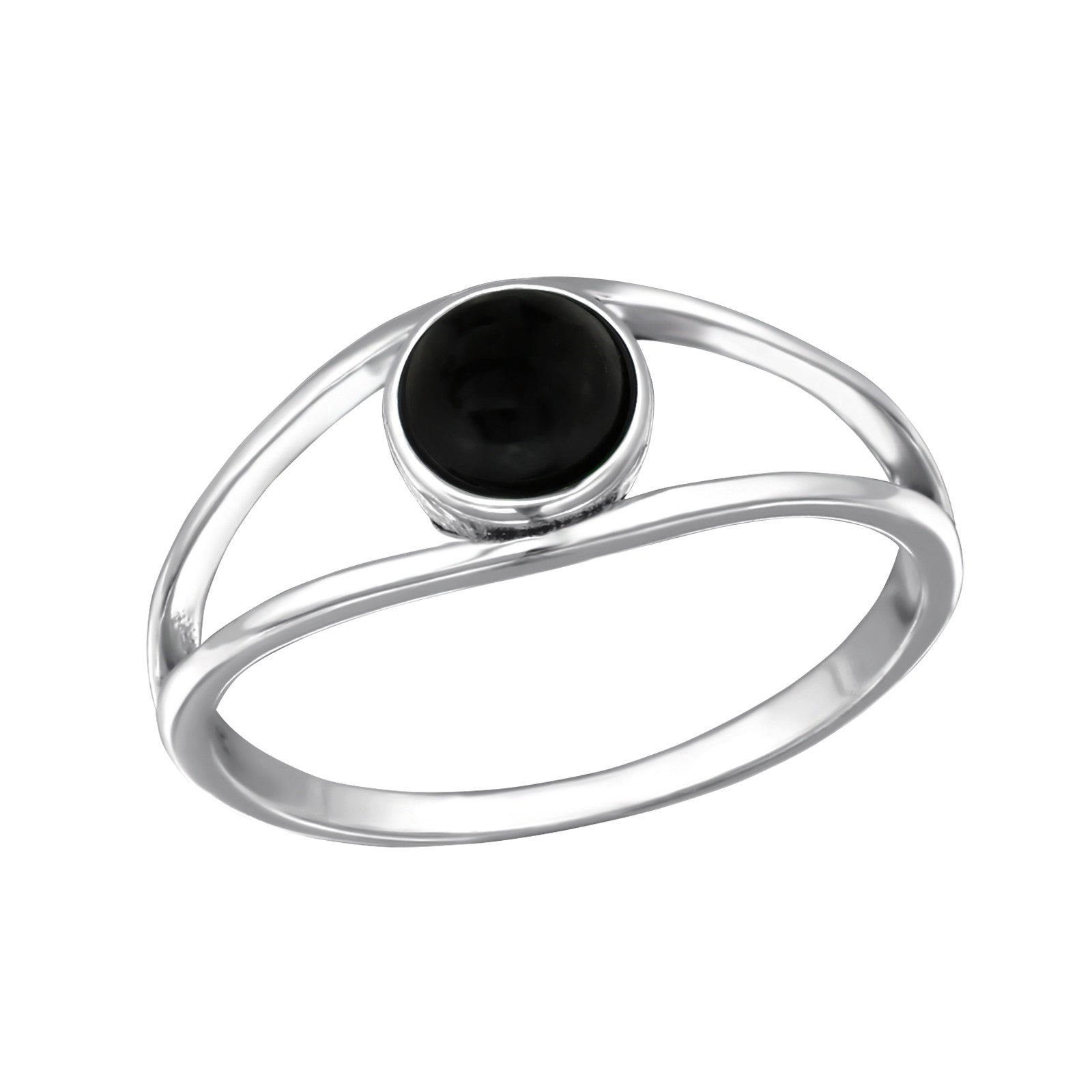 Double Line Black Onyx Stone Ring - 925 Sterling Silver
