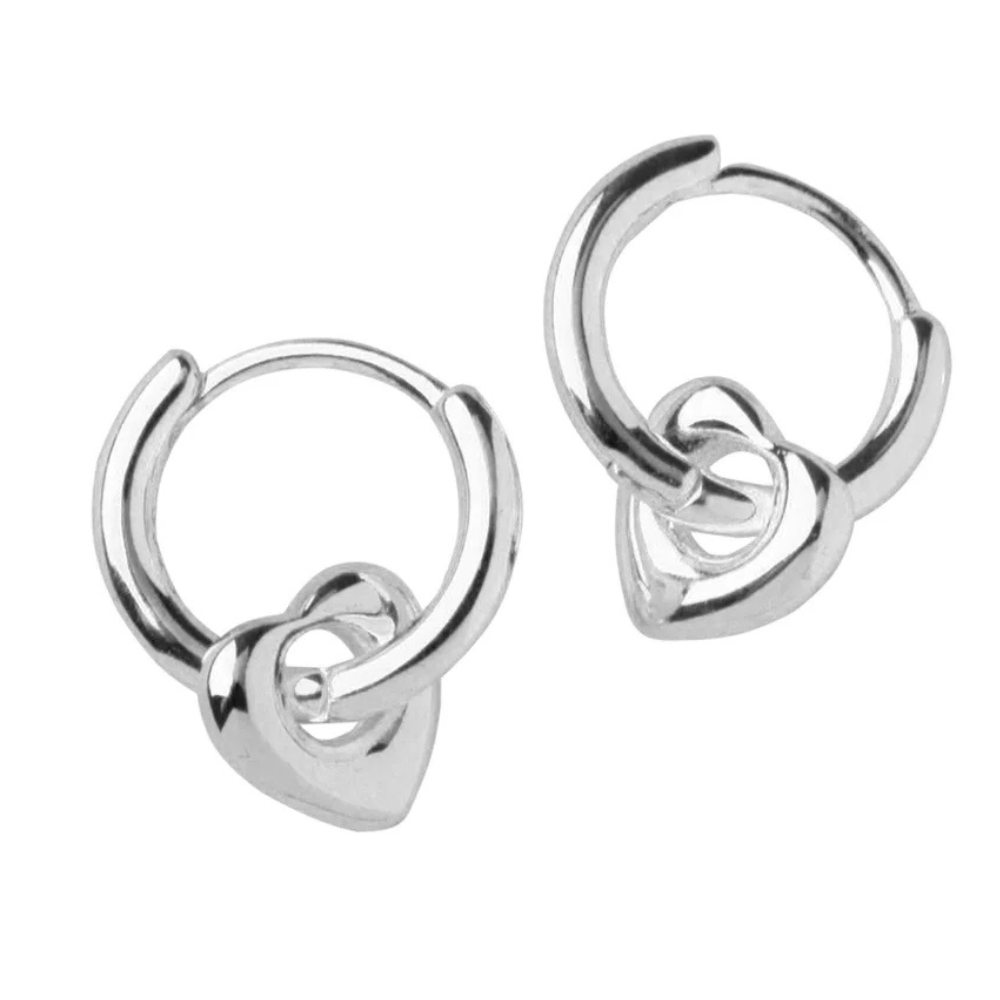 Heart Huggie Hoop Earrings - Pair - 925 Sterling Silver