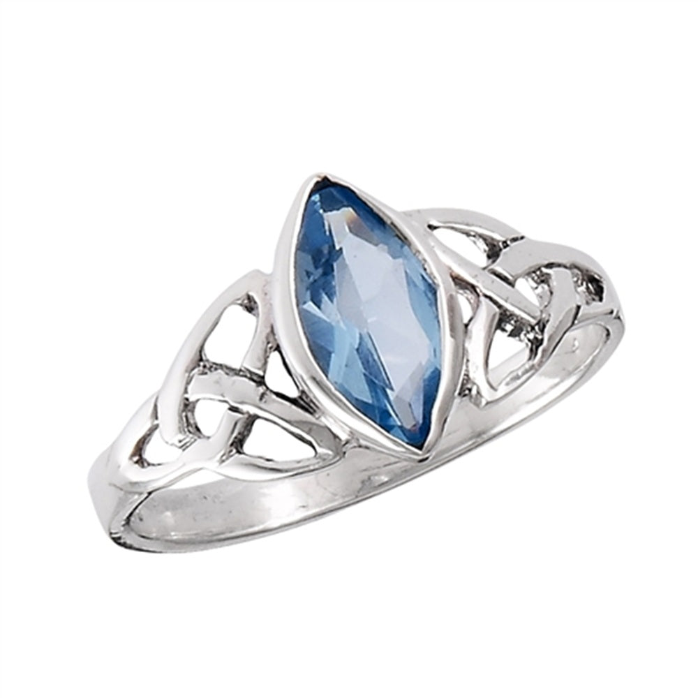 Marquise Shaped Synthetic Blue Topaz Celtic Triquetra Ring - 925 Sterling Silver