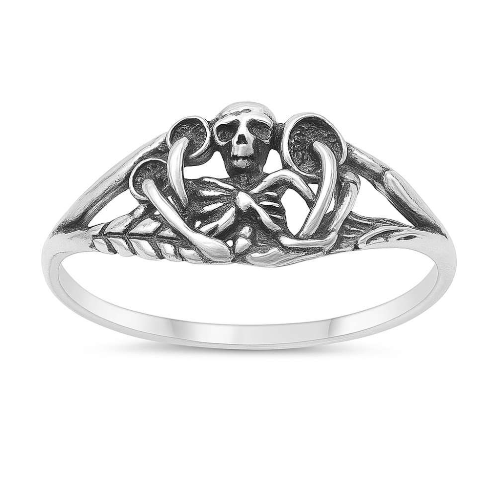 Skeleton and Mushrooms Ring - Oxidized 925 Sterling Silver