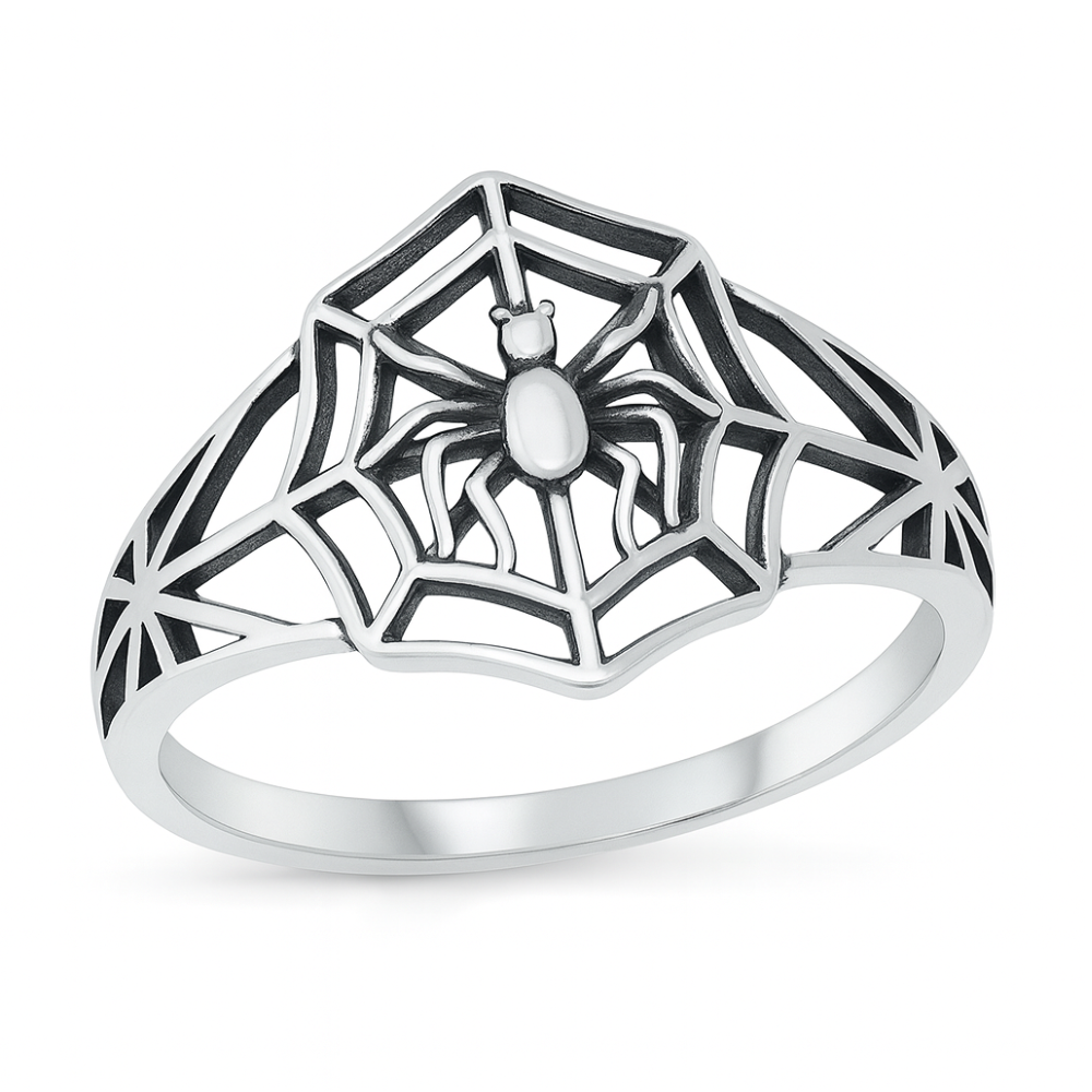 Spider and Web Ring - Oxidized 925 Sterling Silver