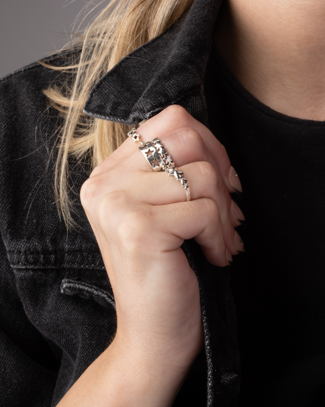 Star Lined Ring - 925 Sterling Silver