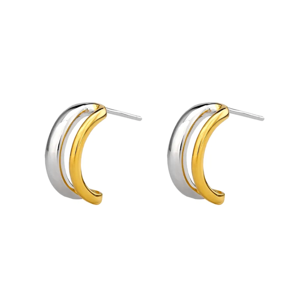 Two Tone Half Hoop Earrings - Pair - 925 Sterling Silver
