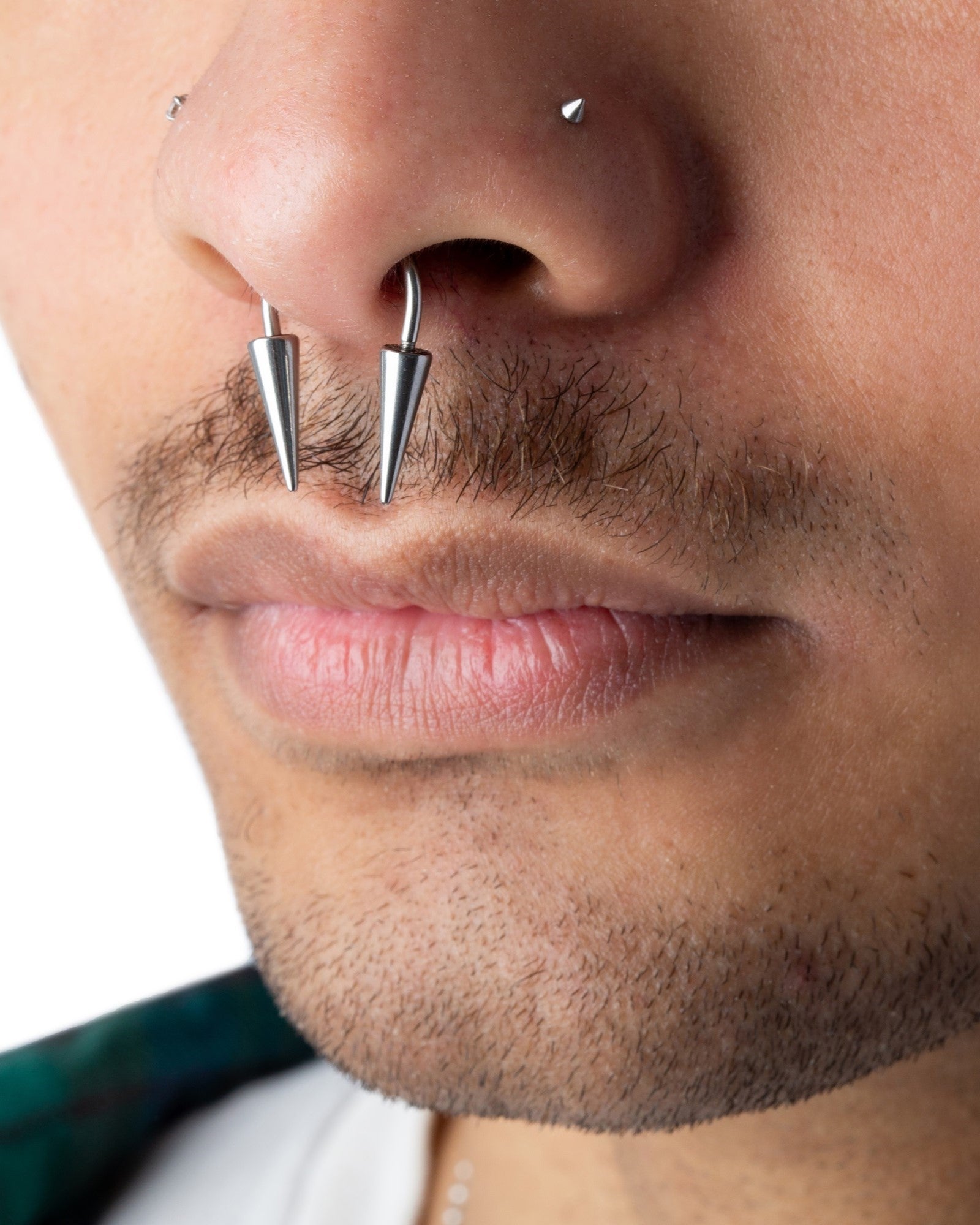 Horseshoe Circular Barbell with Long Spikes - Stainless Steel
