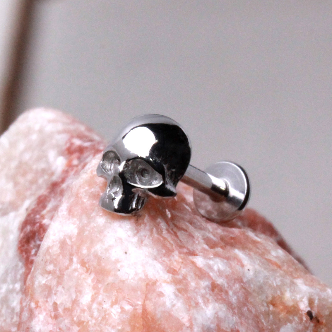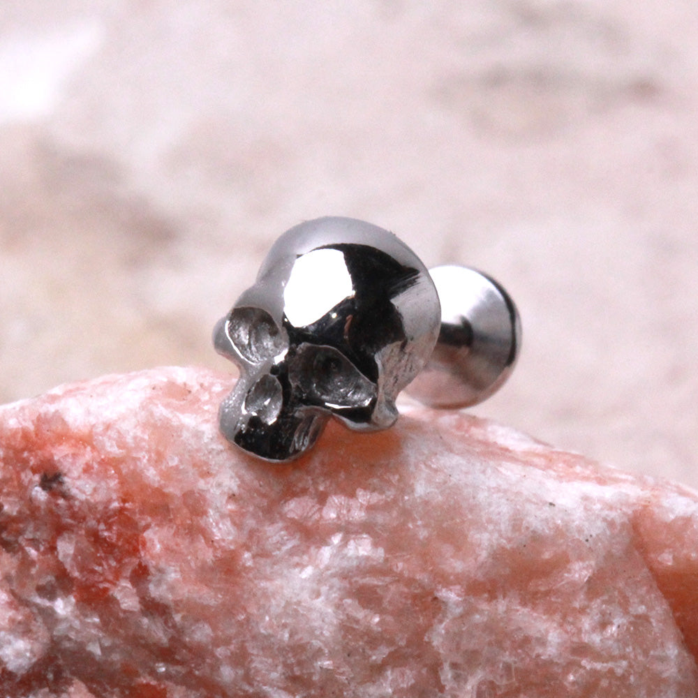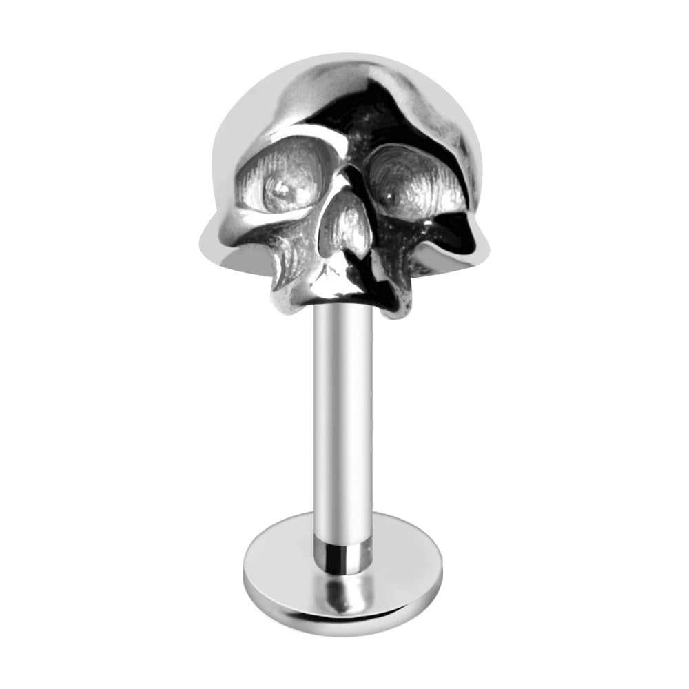Threadless Push-In Skull Top Flat Back Stud - 316L Stainless Steel