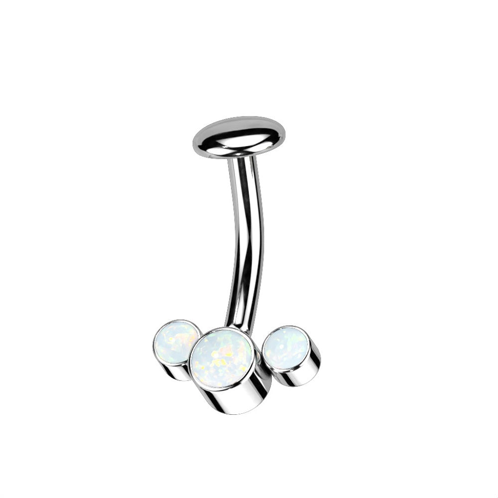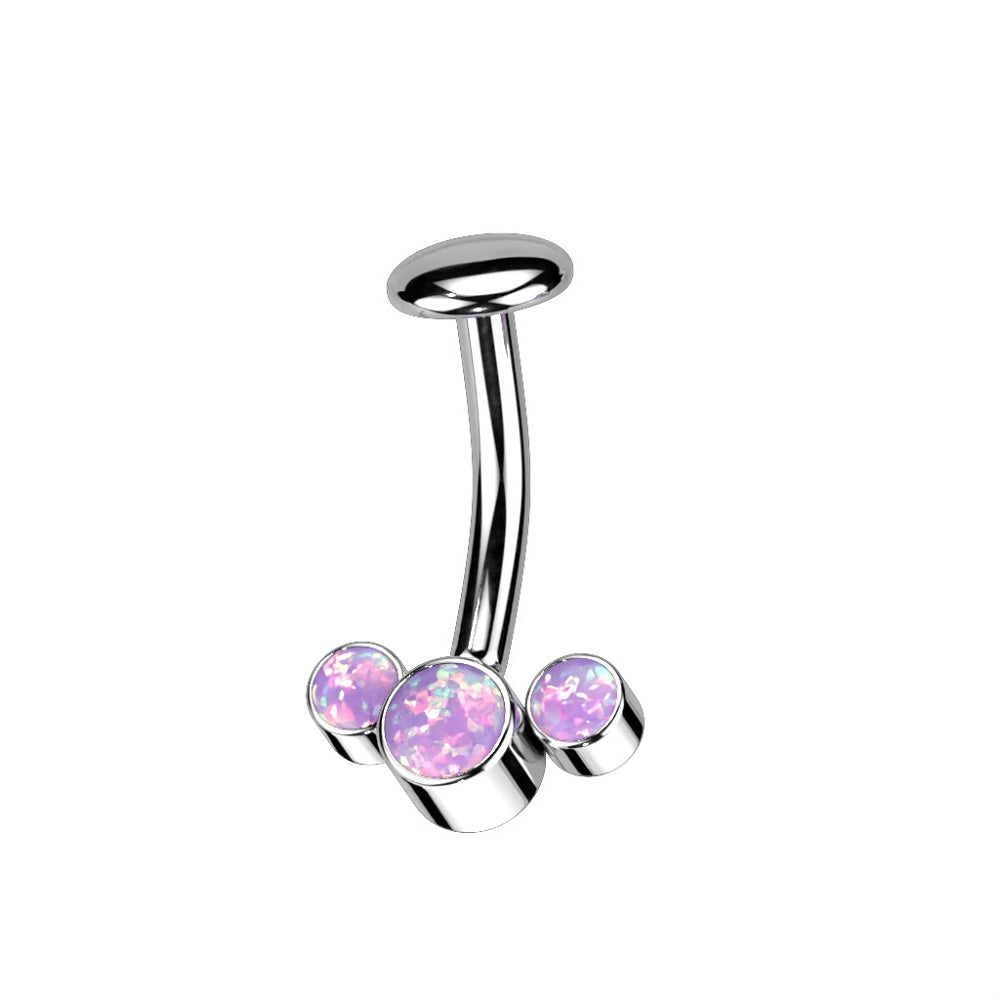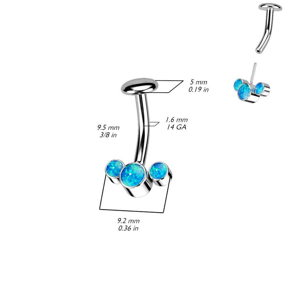 Threadless 5mm Convex Base Triple Synthetic Opal Fan Floating Belly Button Ring - F136 Implant Grade Titanium