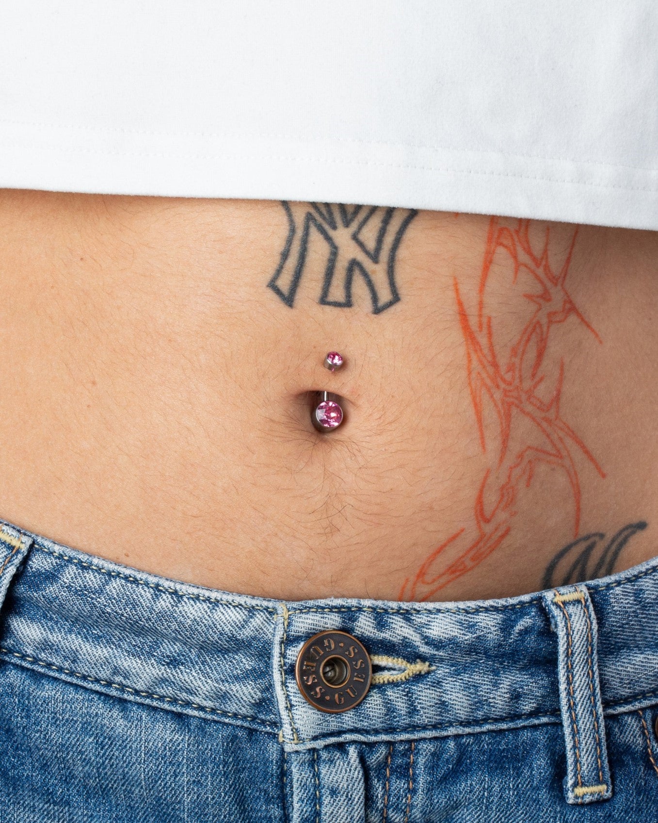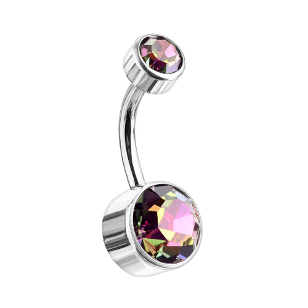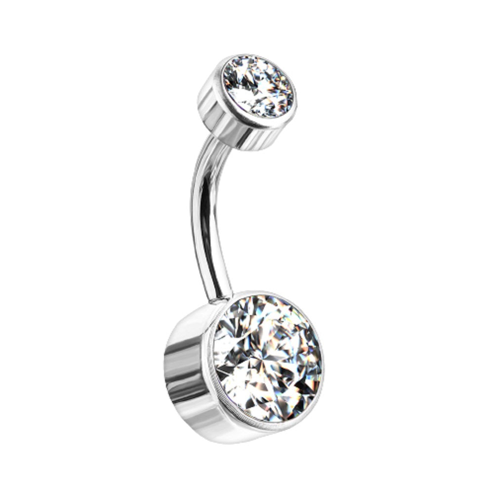 Internally Threaded Top Double Round Bezel Set Crystal Belly Button Ring - G23 Implant Grade Titanium