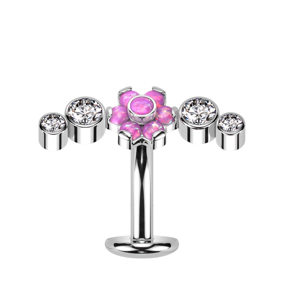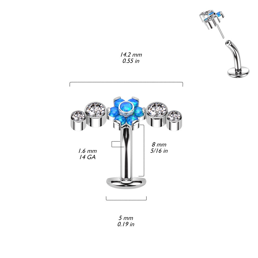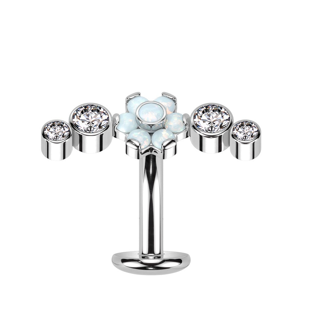 Threadless Push In CZ Crystal and Opalite Flower Floating Belly Button Ring - F136 Implant Grade Titanium
