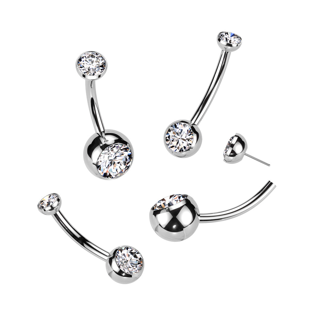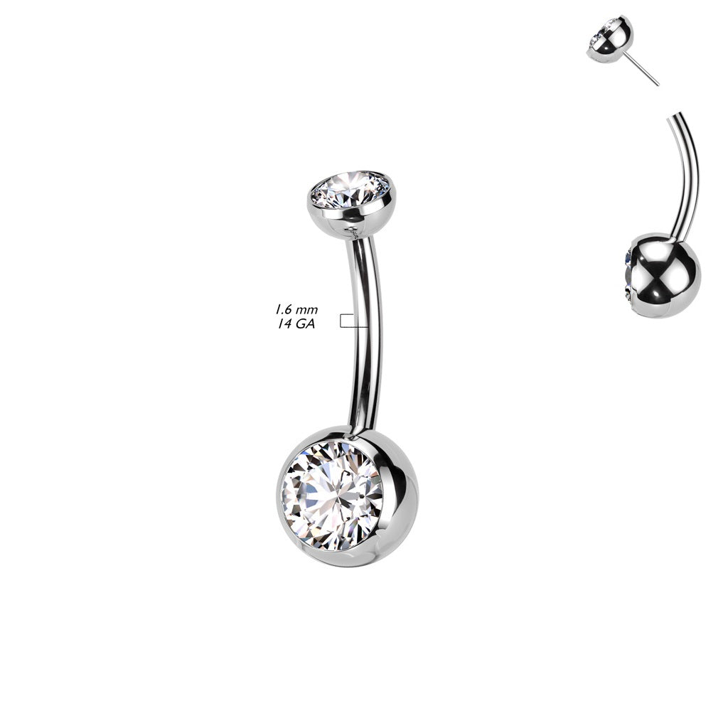 Threadless Push In Double Bezel Set CZ Crystal Belly Button Ring - F136 Implant Grade Titanium