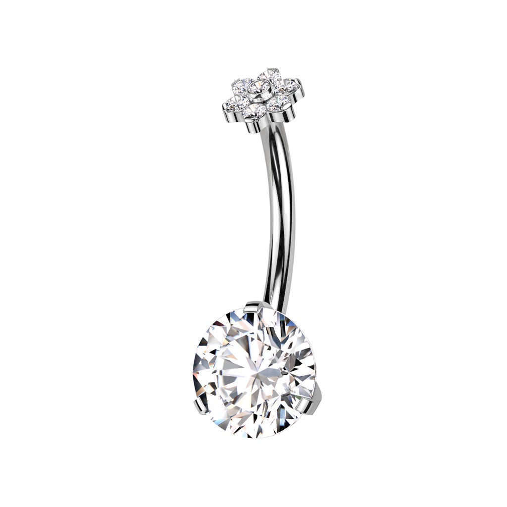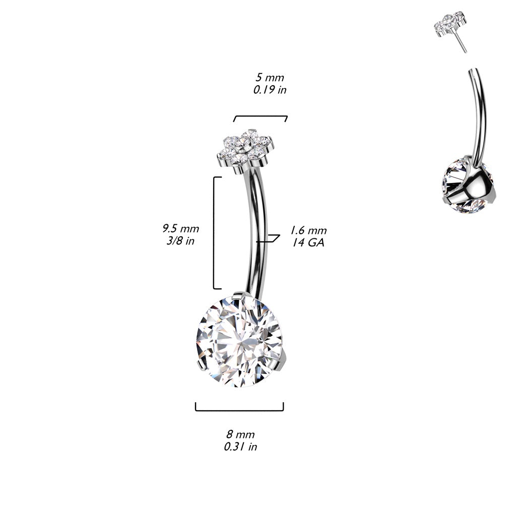 Threadless Push In Prong Set CZ Crystal with Flower Top Belly Button Ring - F136 Implant Grade Titanium