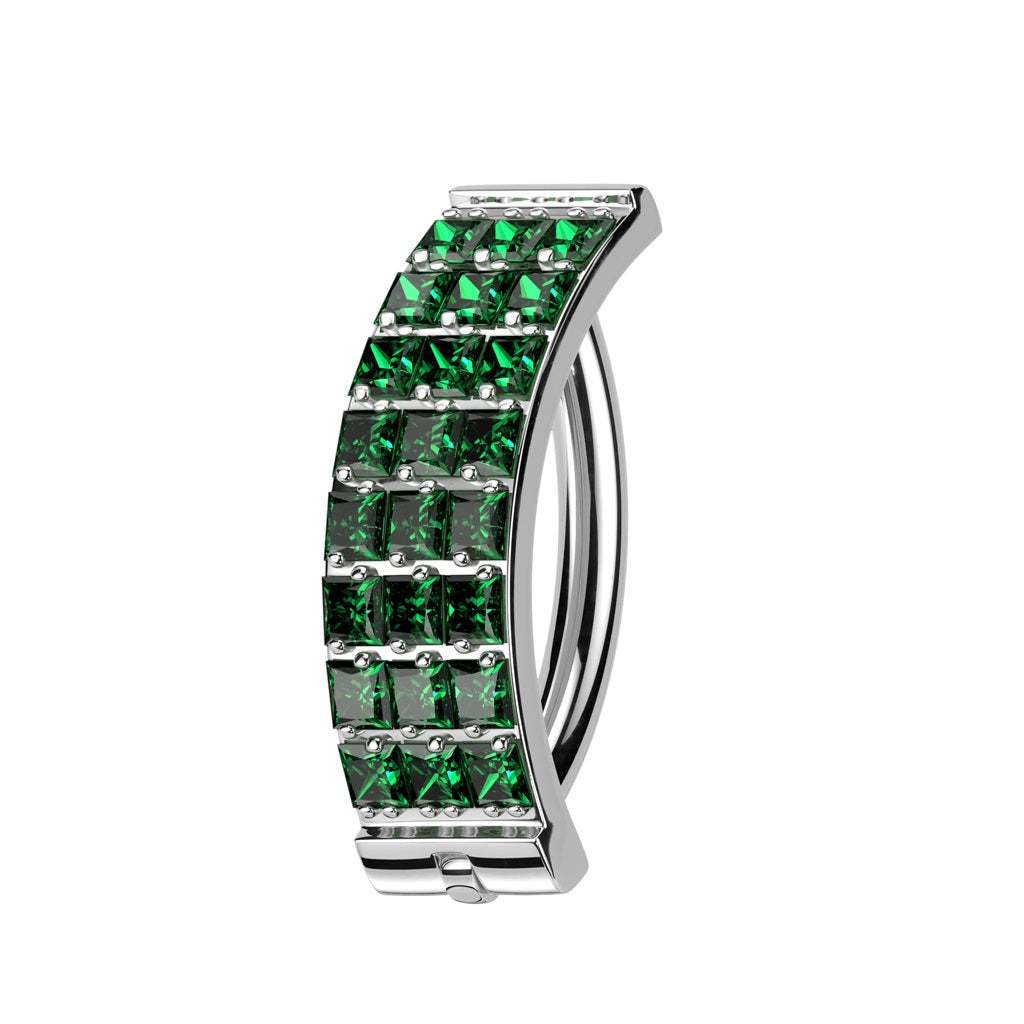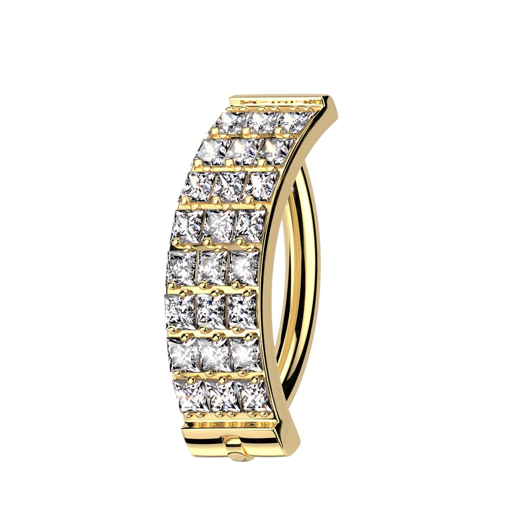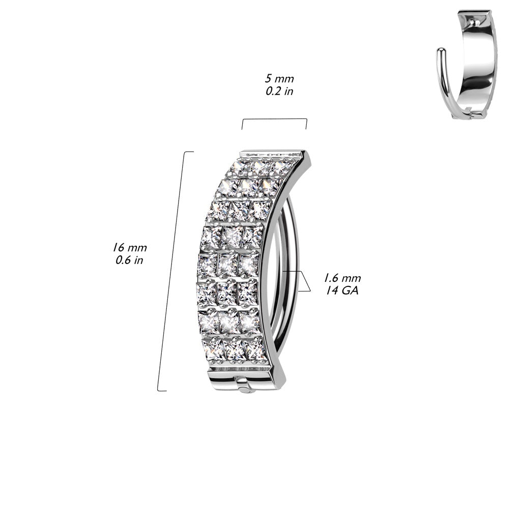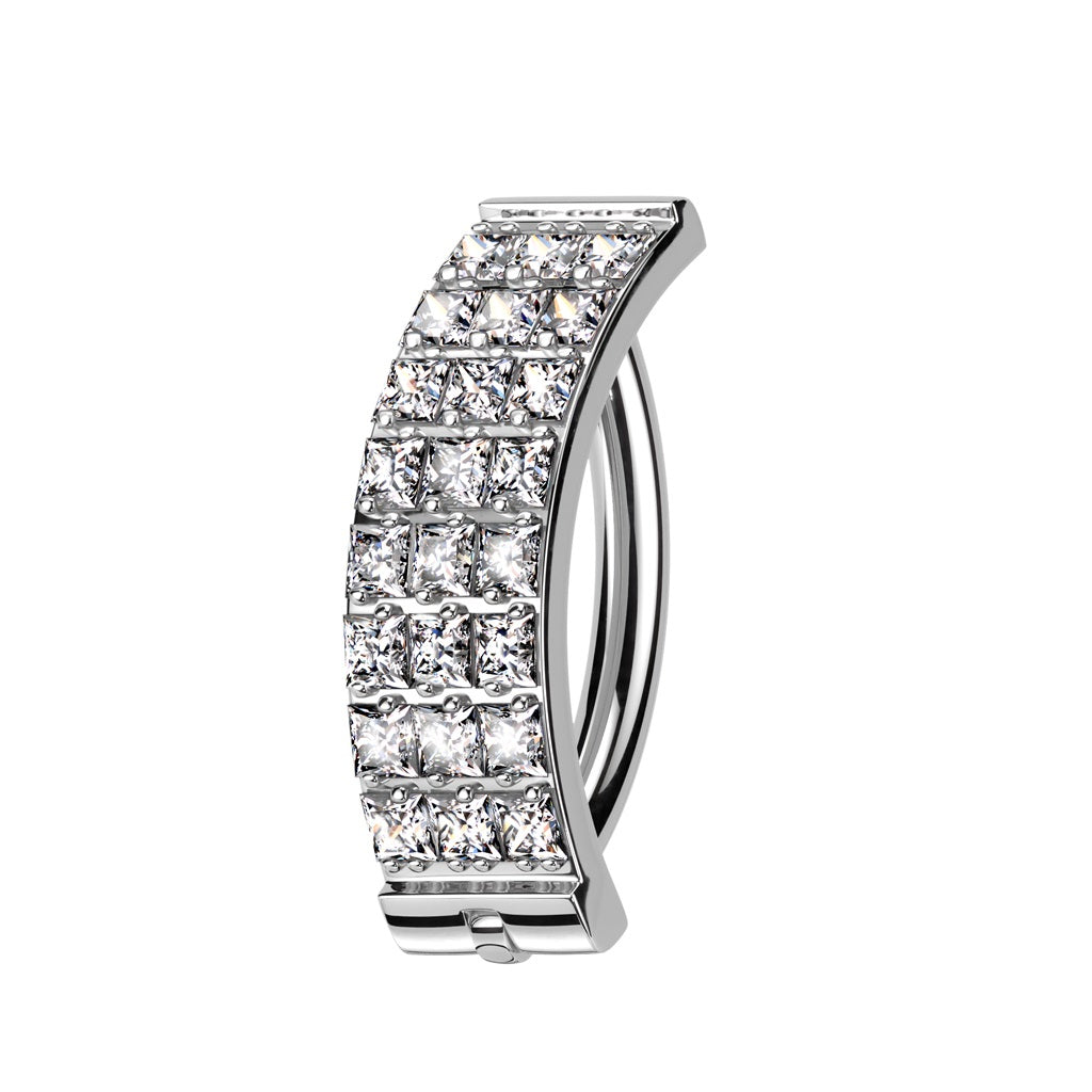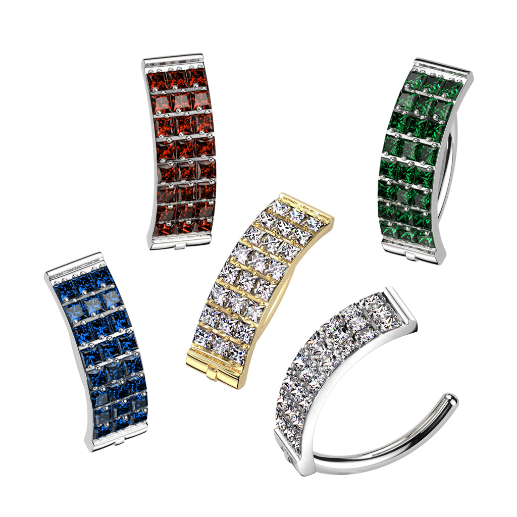 Triple CZ Crystal Paved Line Hinged Curved Bar Belly Button Ring - F136 Implant Grade Titanium