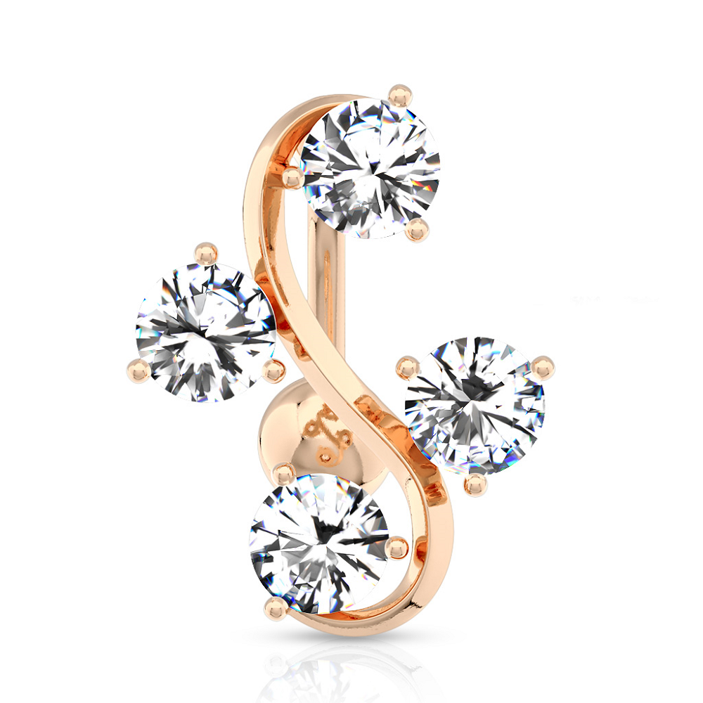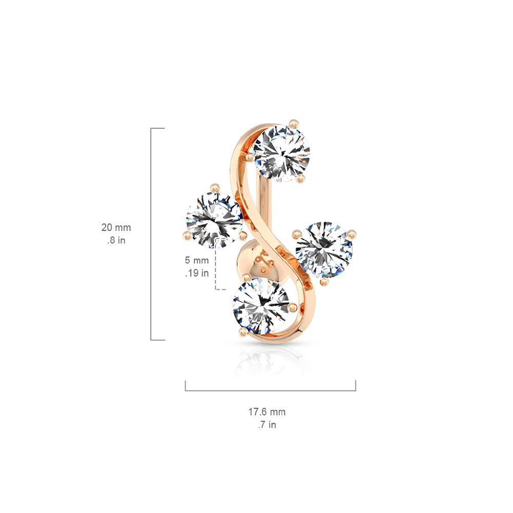 CZ Crystal Gem Vine Top Down Reverse Belly Button Ring - Rose Gold Plated Stainless Steel