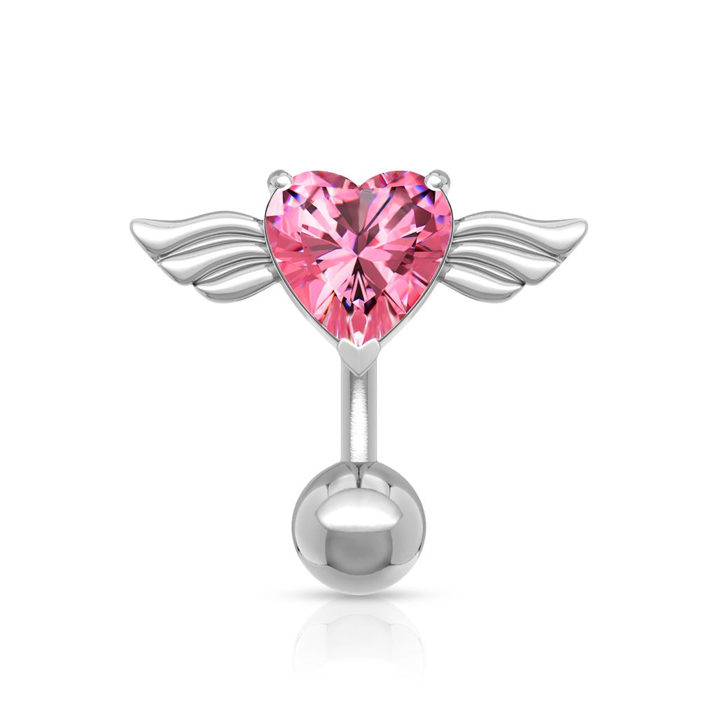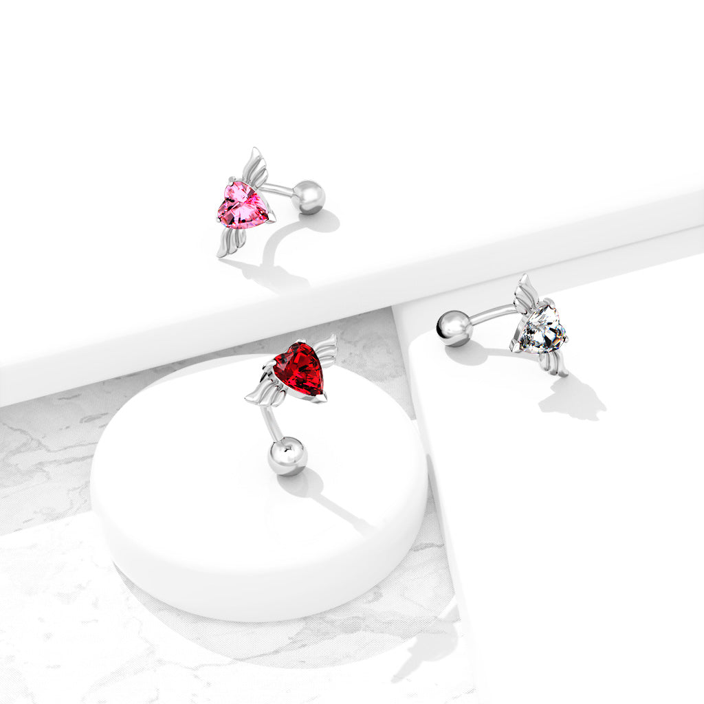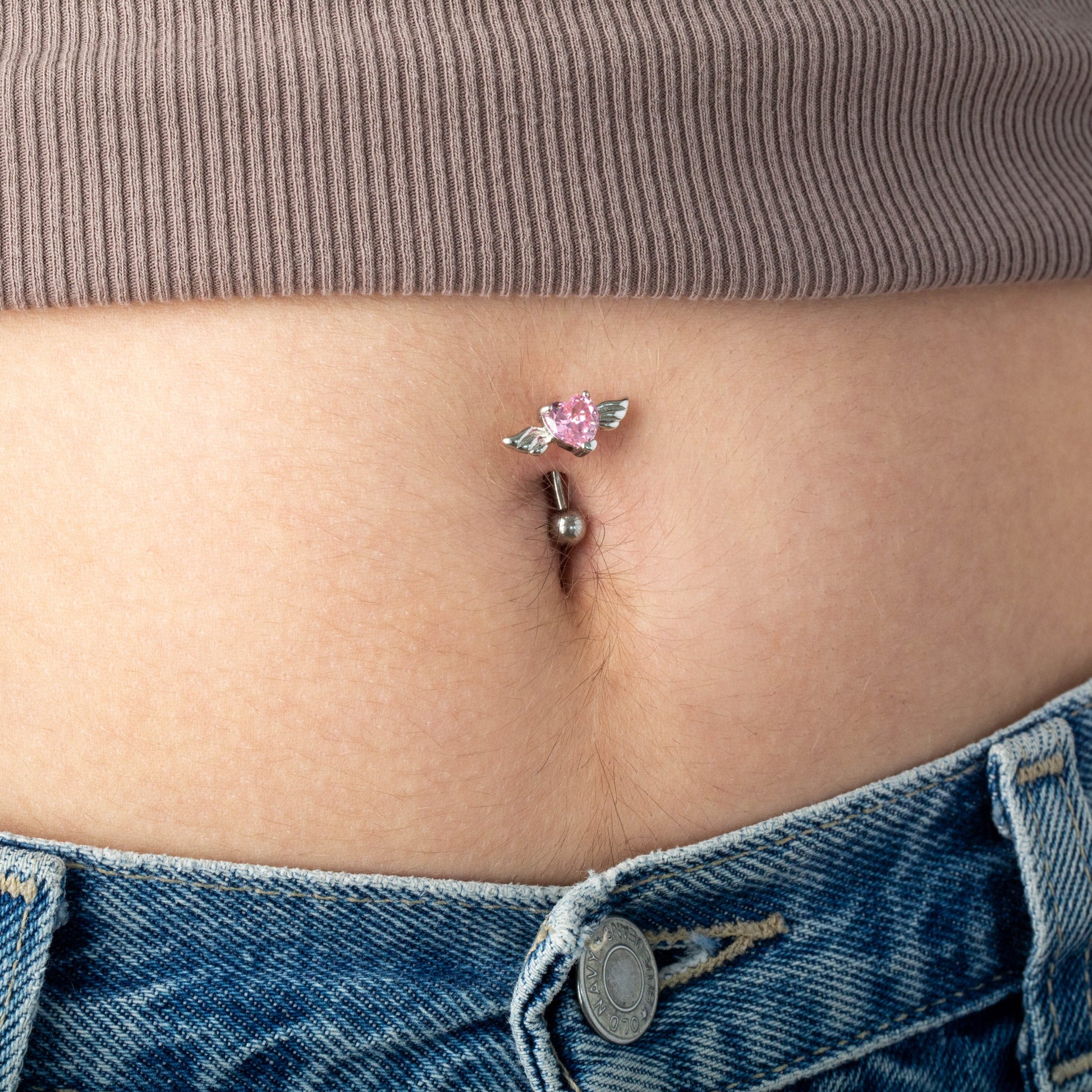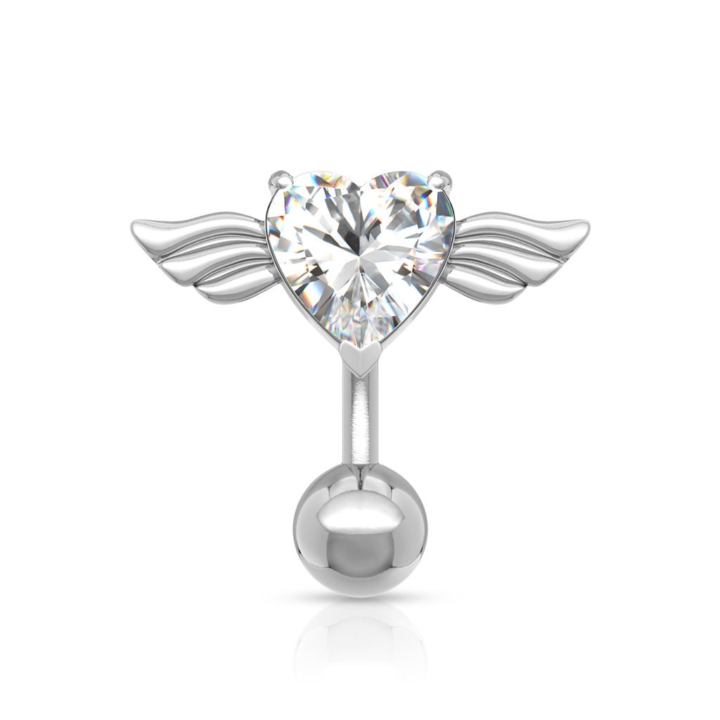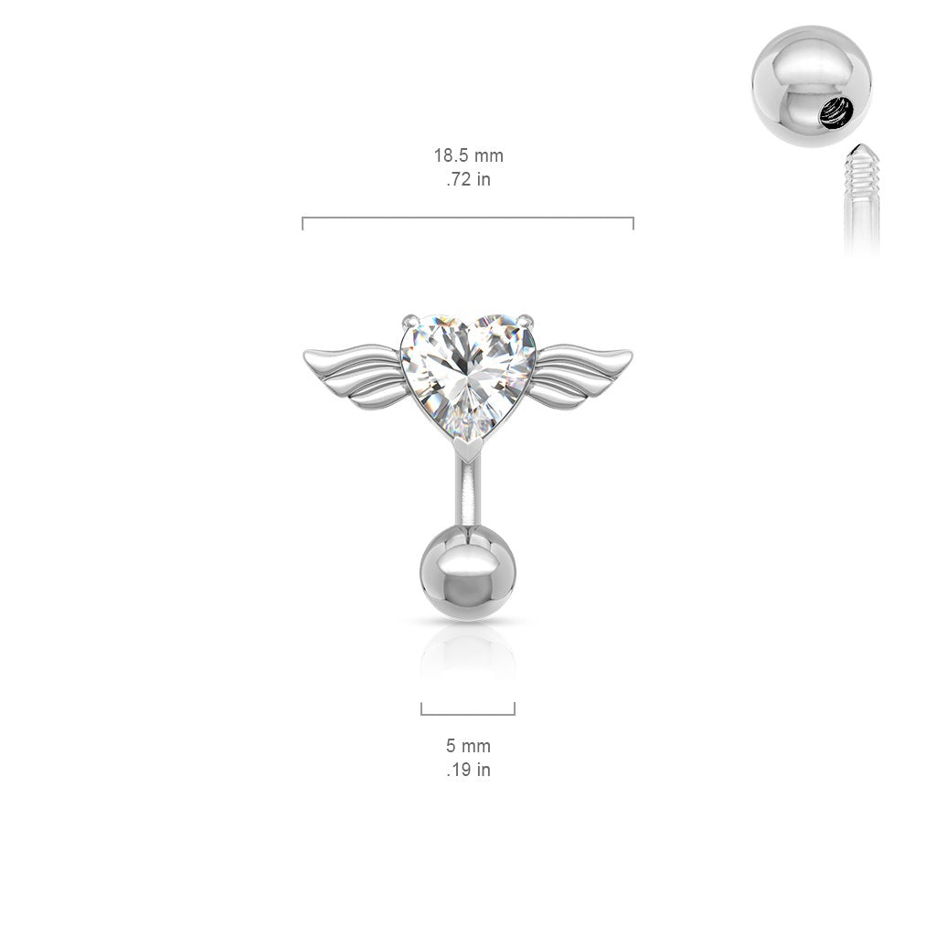 Flying Heart with Angel Wings Top Down Belly Button Ring - 316L Stainless Steel