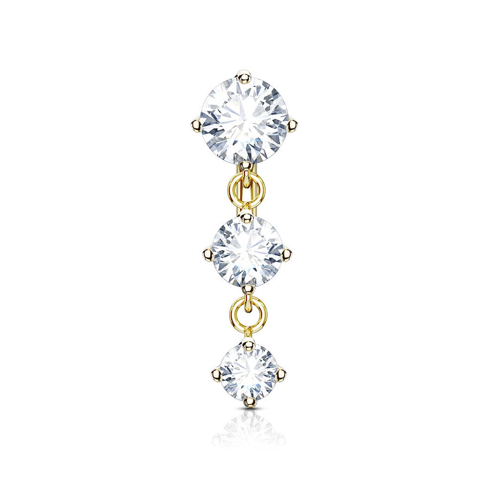 Triple Round CZ Crystal Vertical Drop Belly Button Ring - 316L Stainless Steel