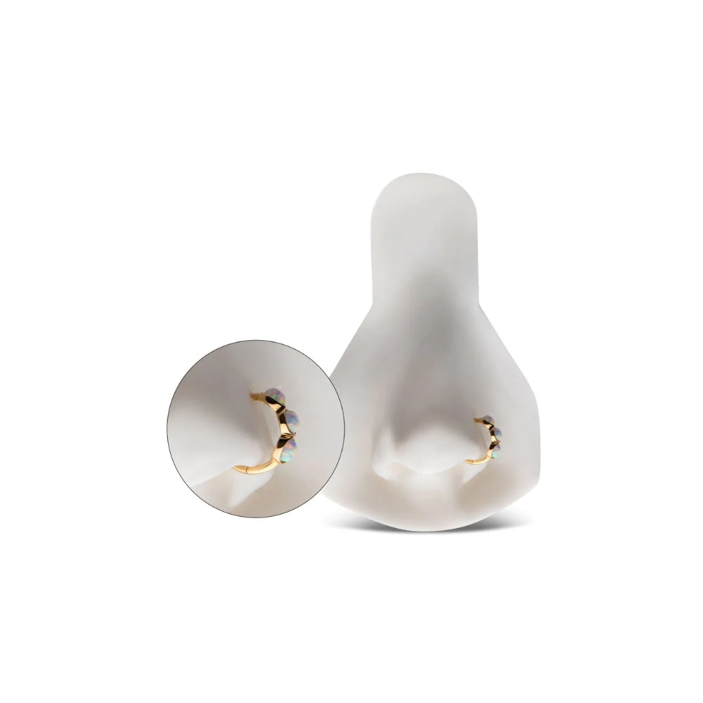 Clustered White Opal Side Facing Hinged Segment Clicker - 14kt Gold