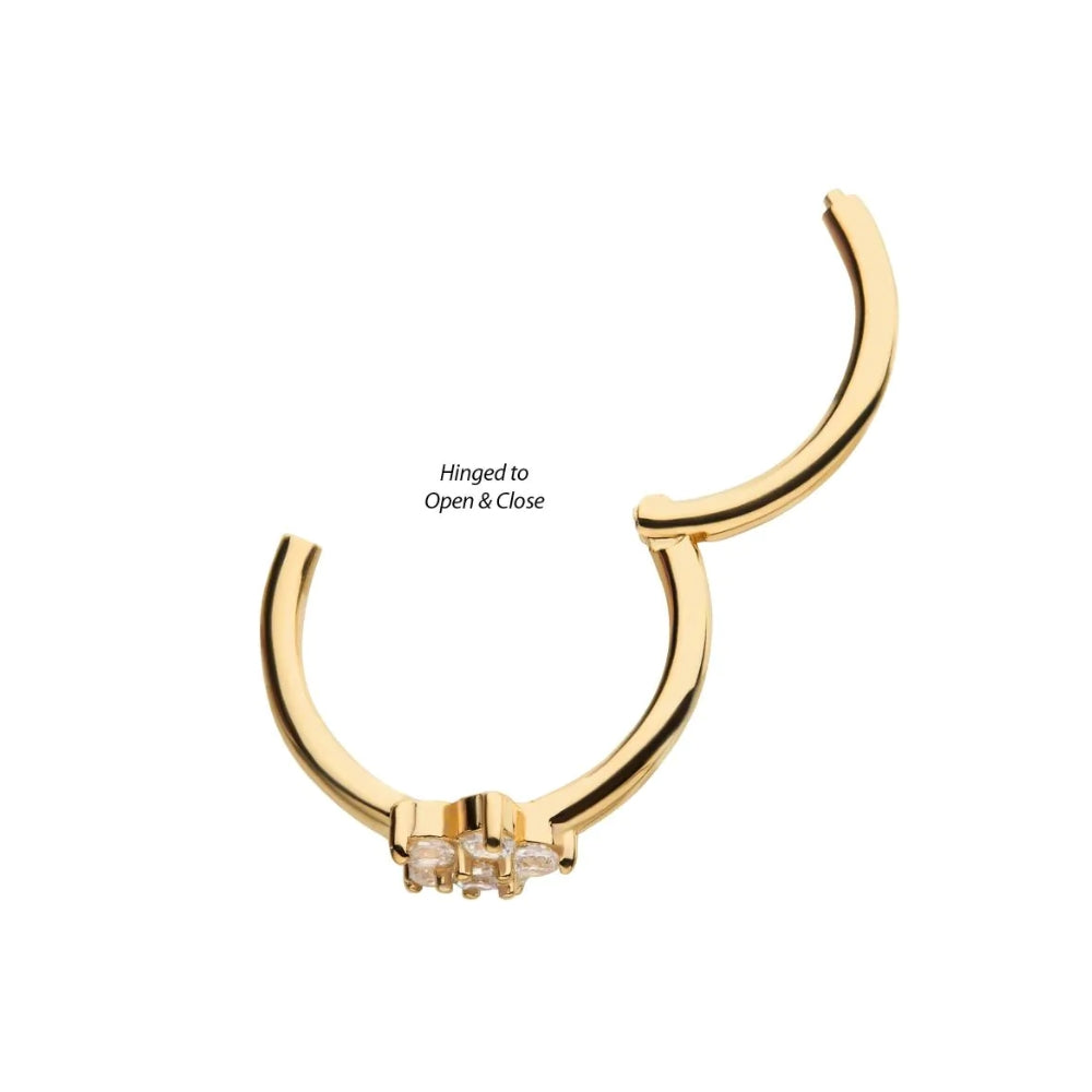 CZ Flower Side Facing Hinged Segment - 14kt Gold