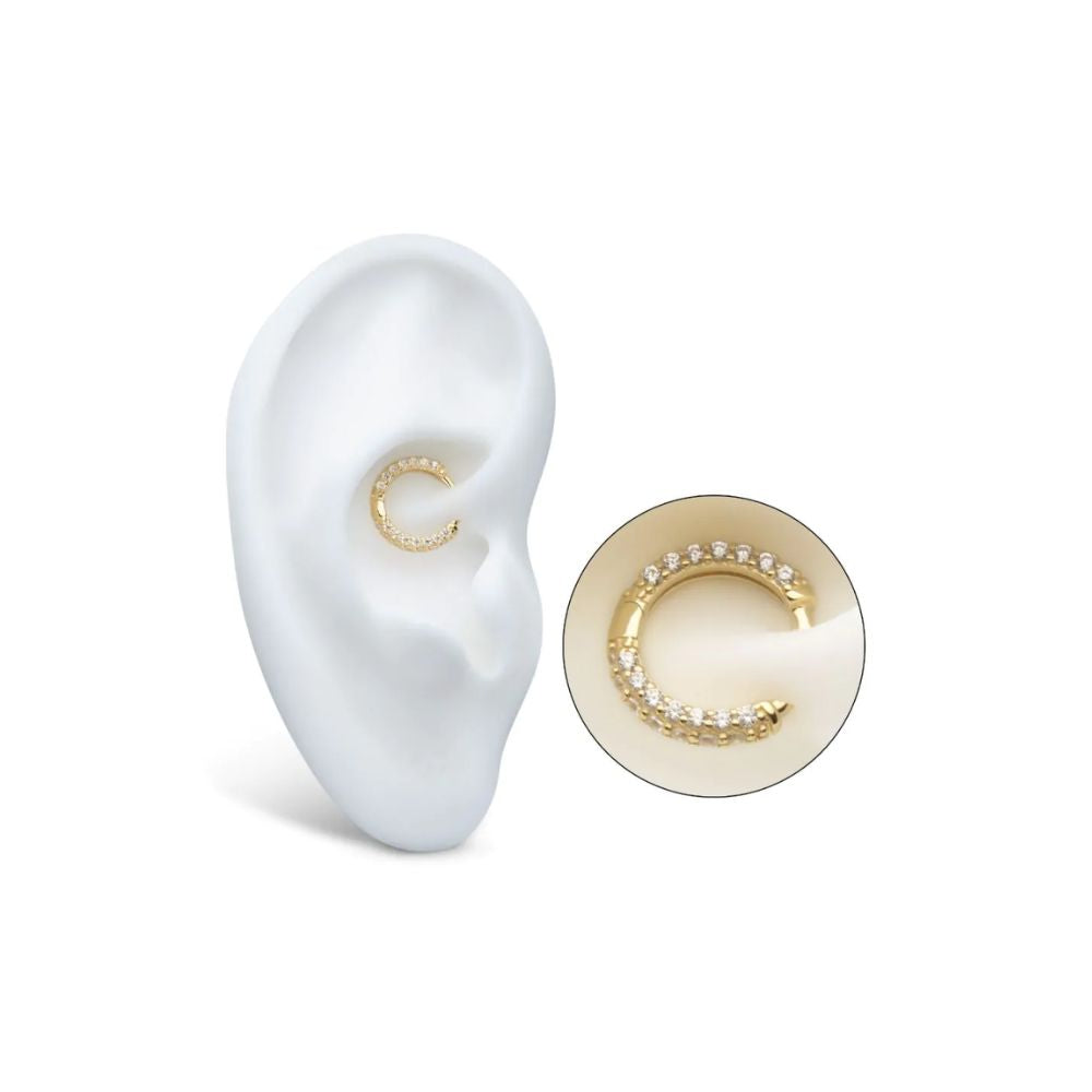 CZ Gem Three Row Paved Hinged Hoop Huggie Earring - 14kt Gold