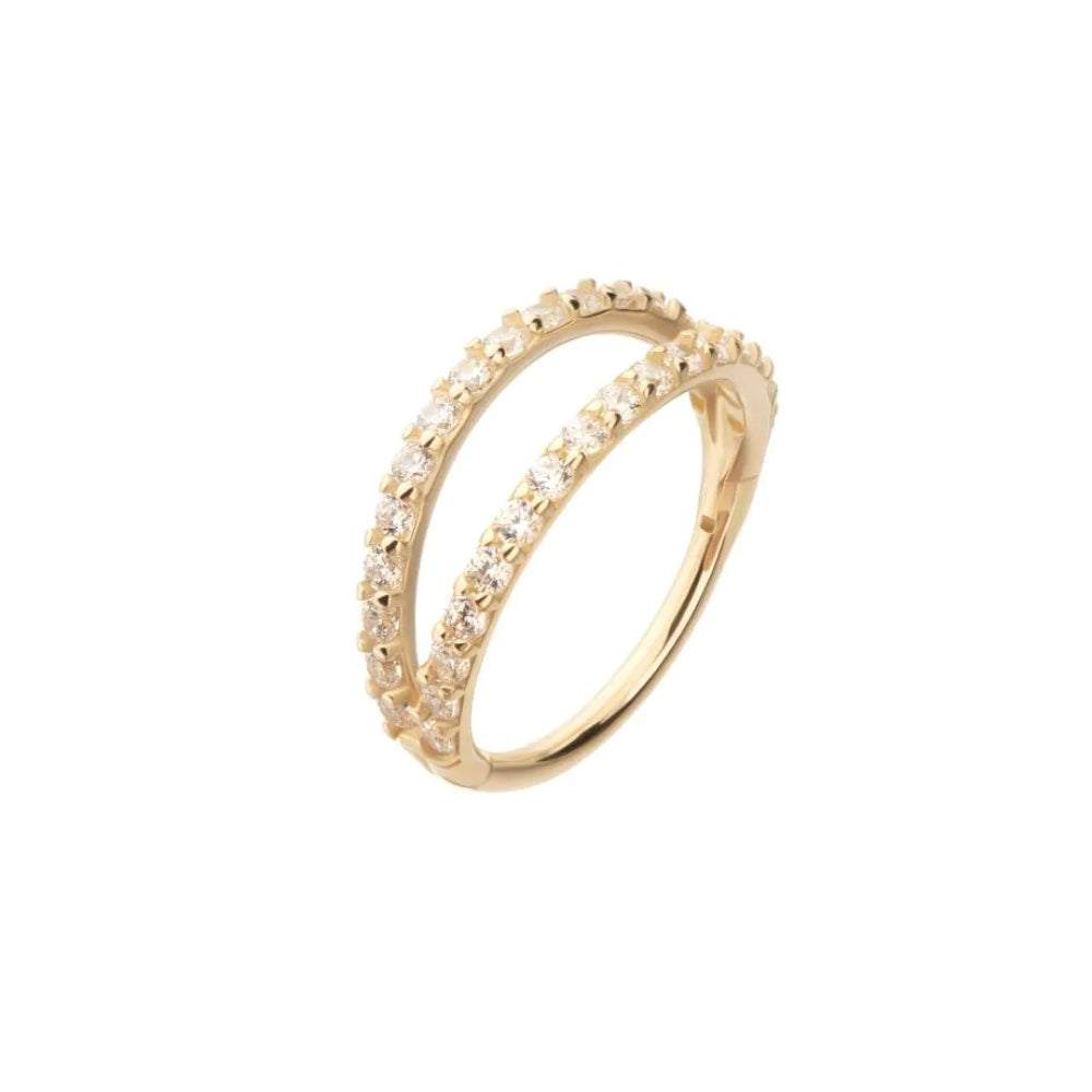 Double Hoop CZ Side Facing Hinged Segment Clicker - 14kt Gold