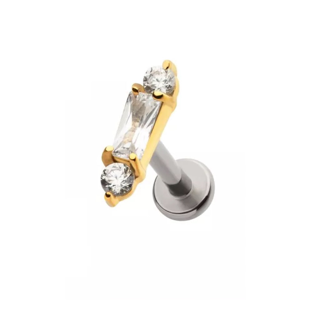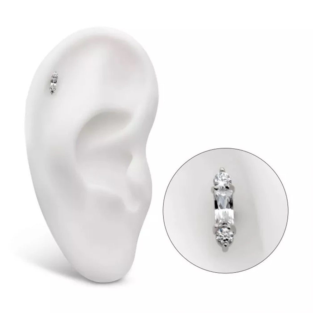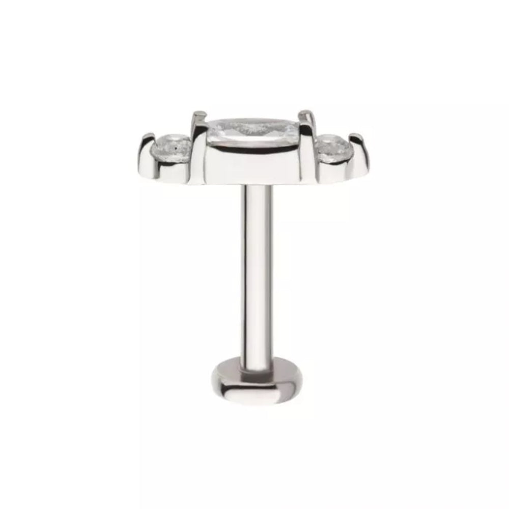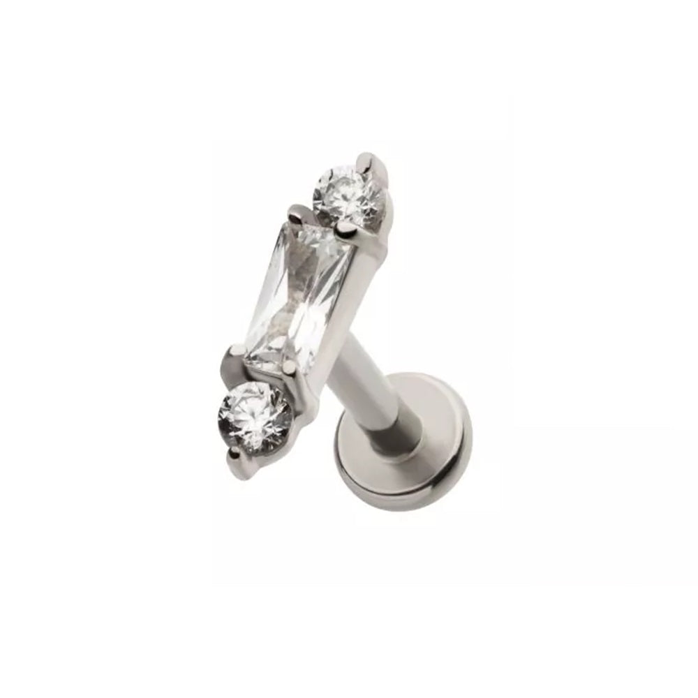Internally Threaded Baguette CZ Crystal Cluster Flat Back Stud - 316L Stainless Steel