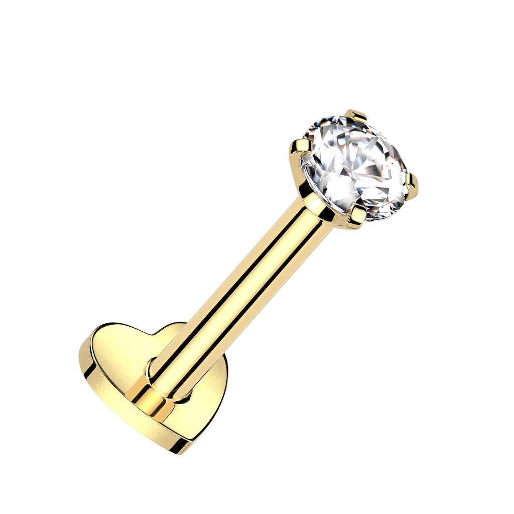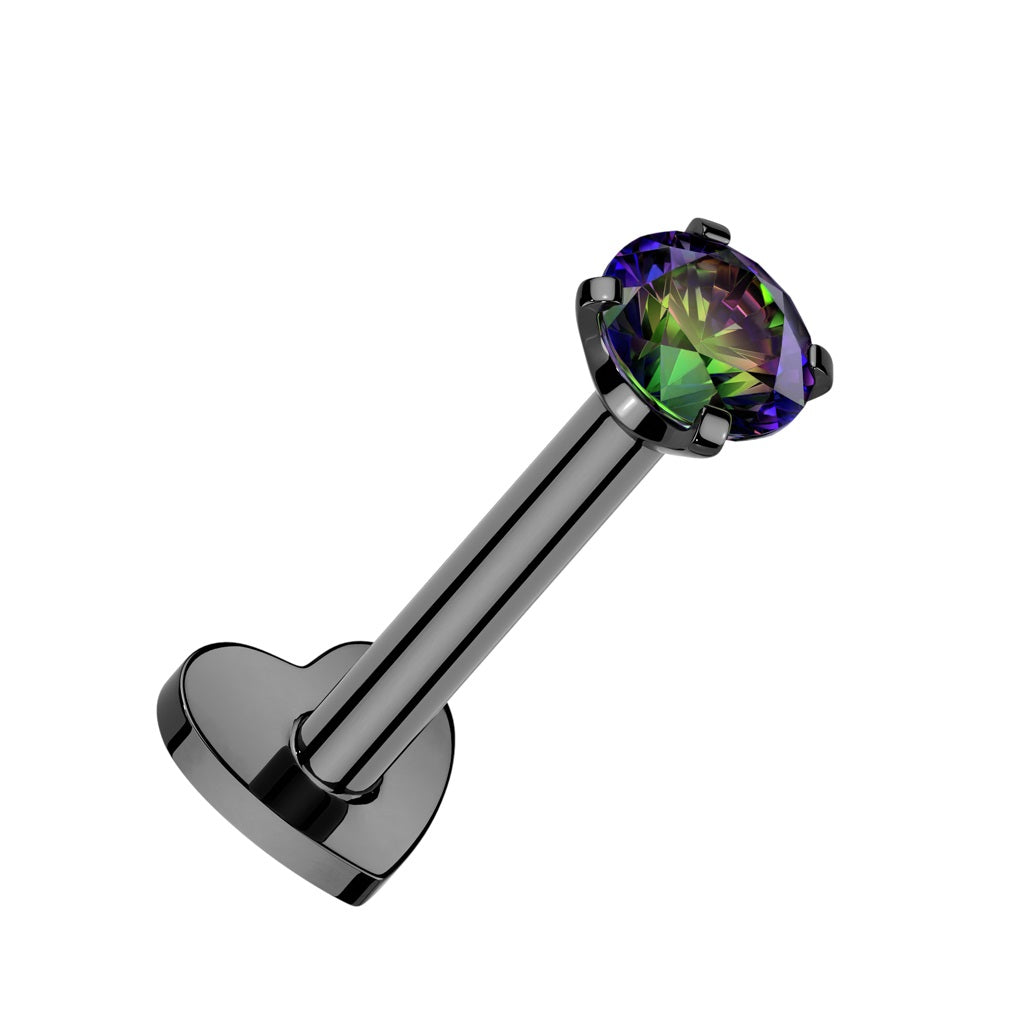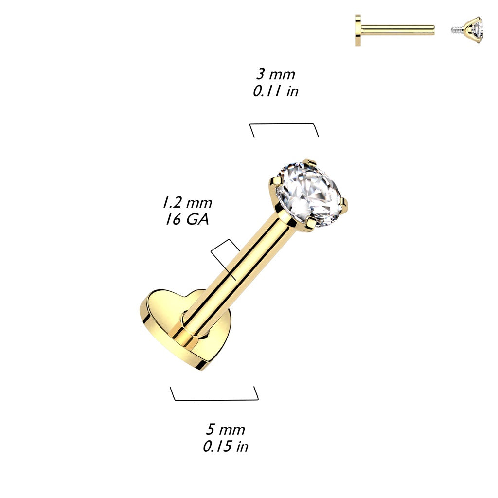 Internally Threaded CZ Crystal Top with Heart Shaped Flat Back Stud - ASTM F-136 Implant Grade Titanium
