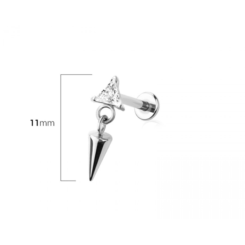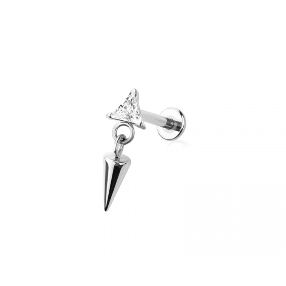 Threadless Push In CZ Crystal Triangle with Dangling Spike Flat Back Stud - ASTM F-136 Implant Grade Titanium