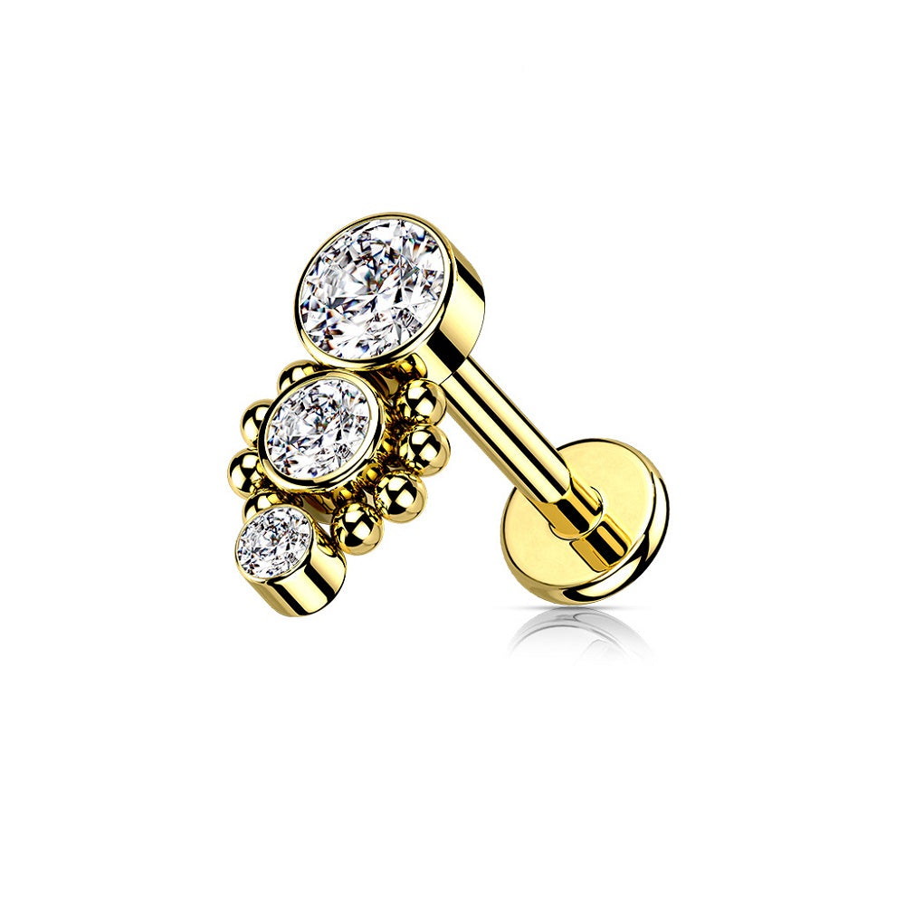 Triple Round CZ Crystal Dropdown with Ball Clusters Internally Threaded Flat Back Stud - 316L Stainless Steel