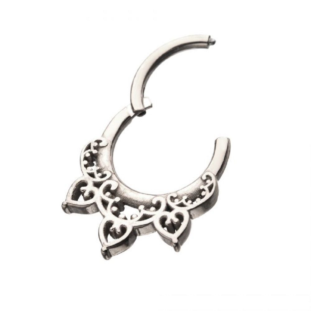 Filigree Heart Design Helix Cartilage Daith Septum Hinged Segment Clicker Ring - Stainless Steel