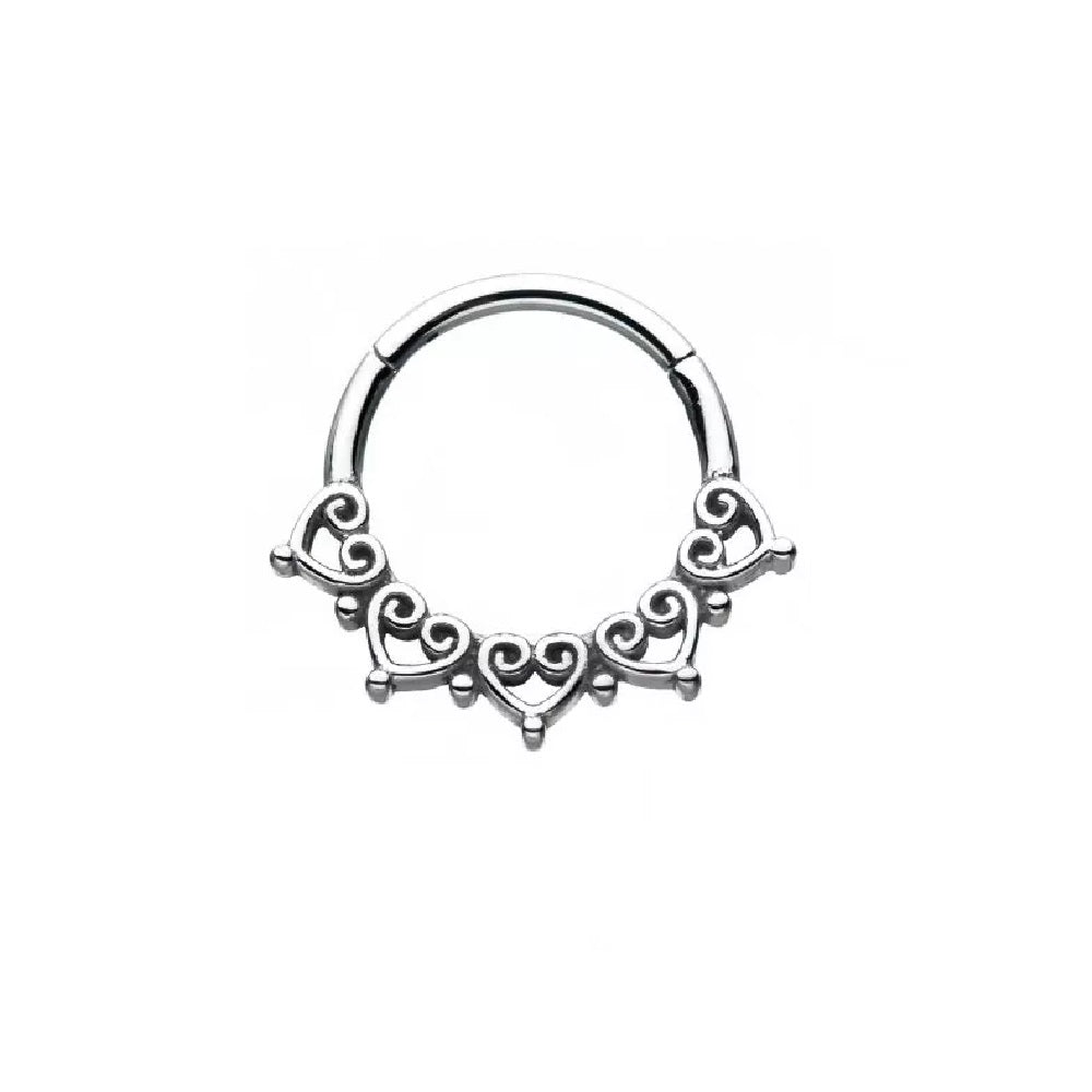 Filigree Lacey Heart Hinged Segment Ring - Stainless Steel