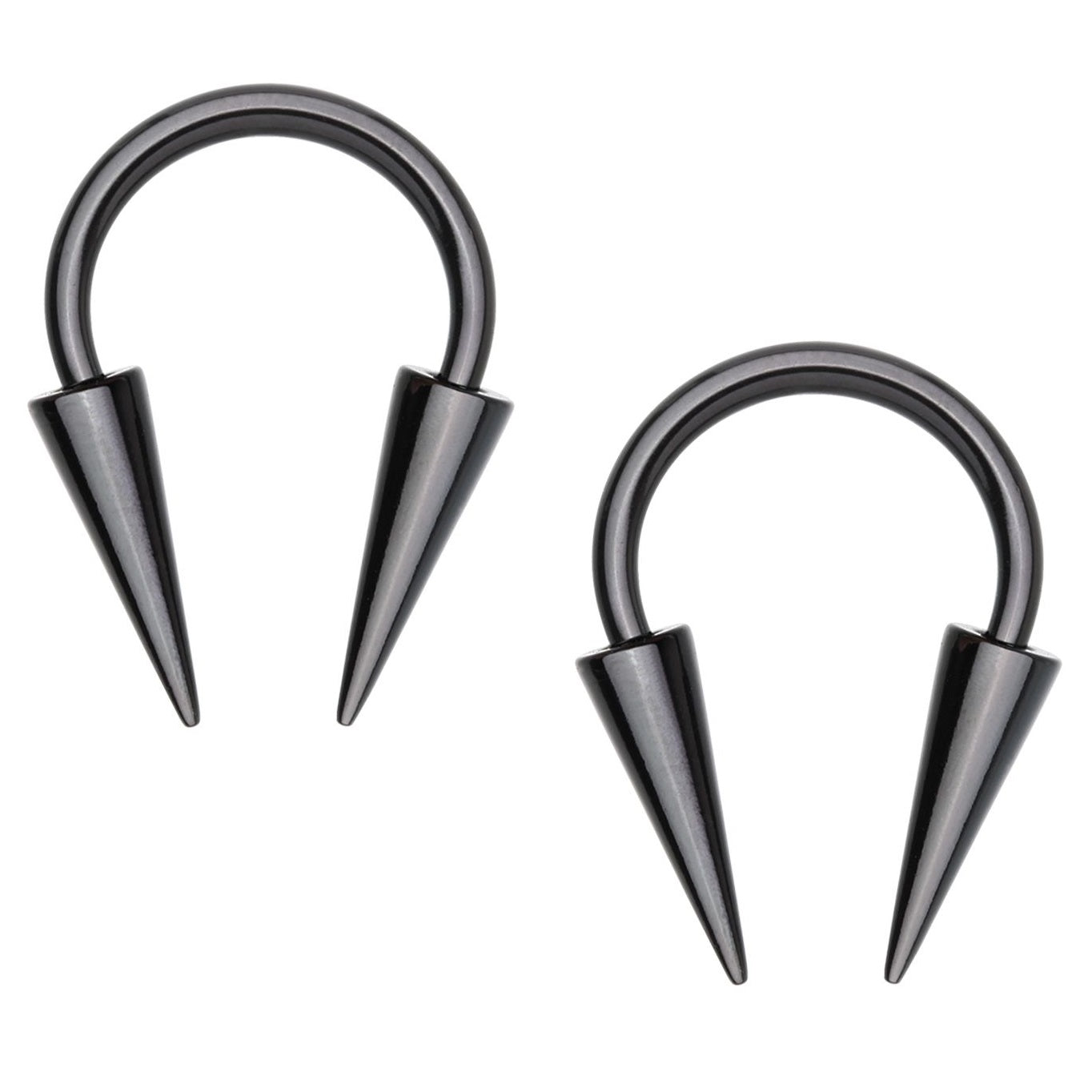 Long Spike Horseshoe Circular Barbell Earrings - Stainless Steel - Pair