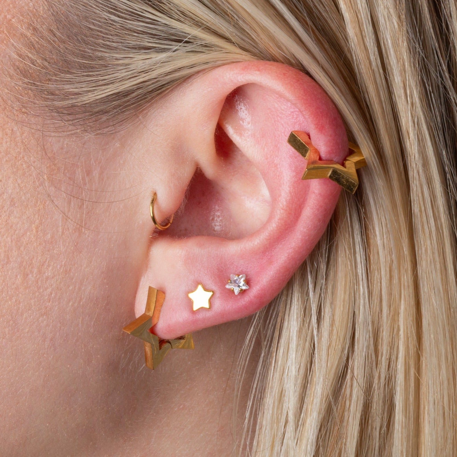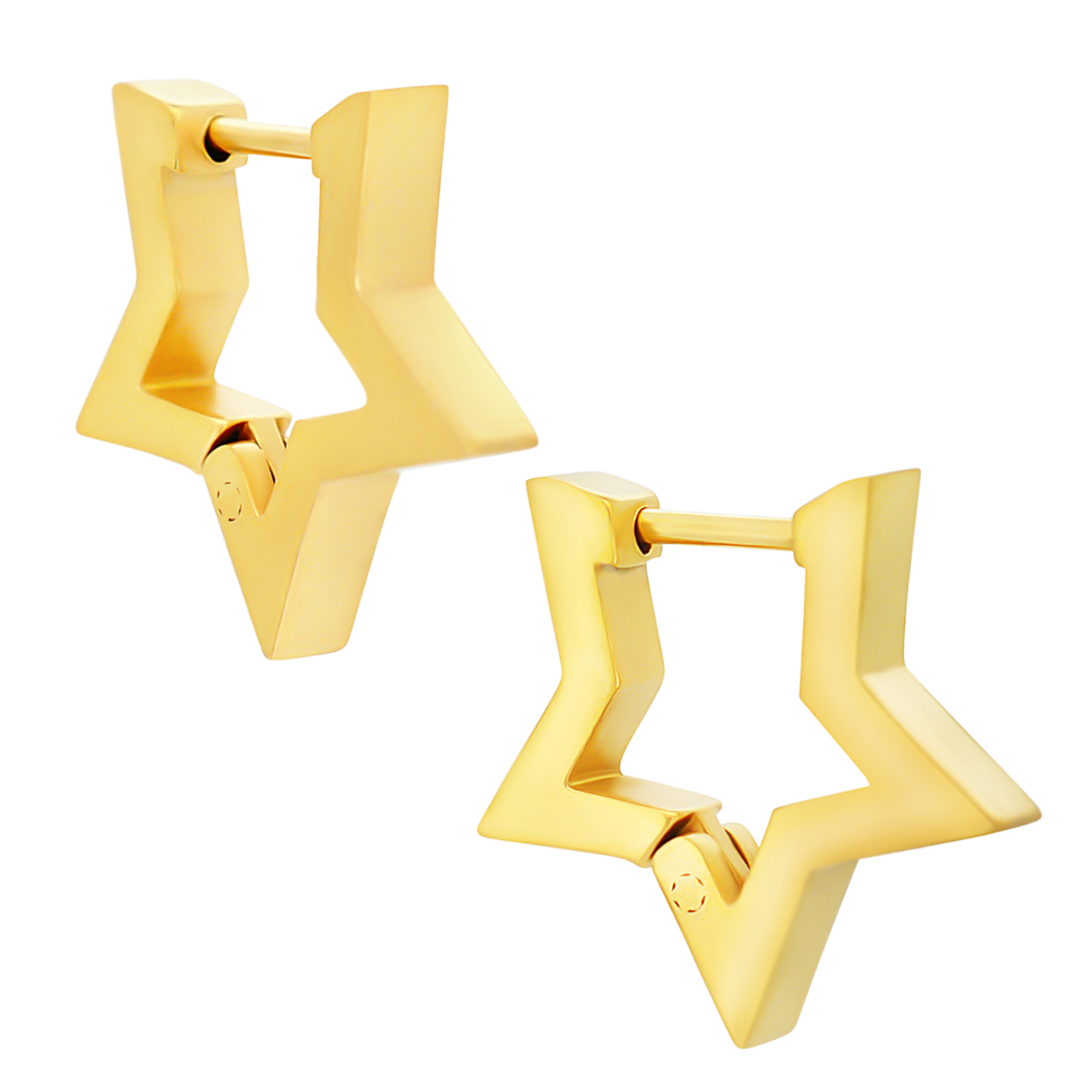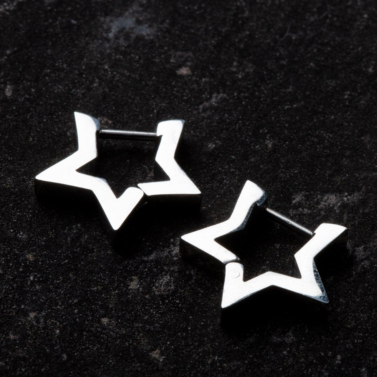 Star Shaped Outline Huggie Hoop Earrings - Pair - 316L Stainless Steel