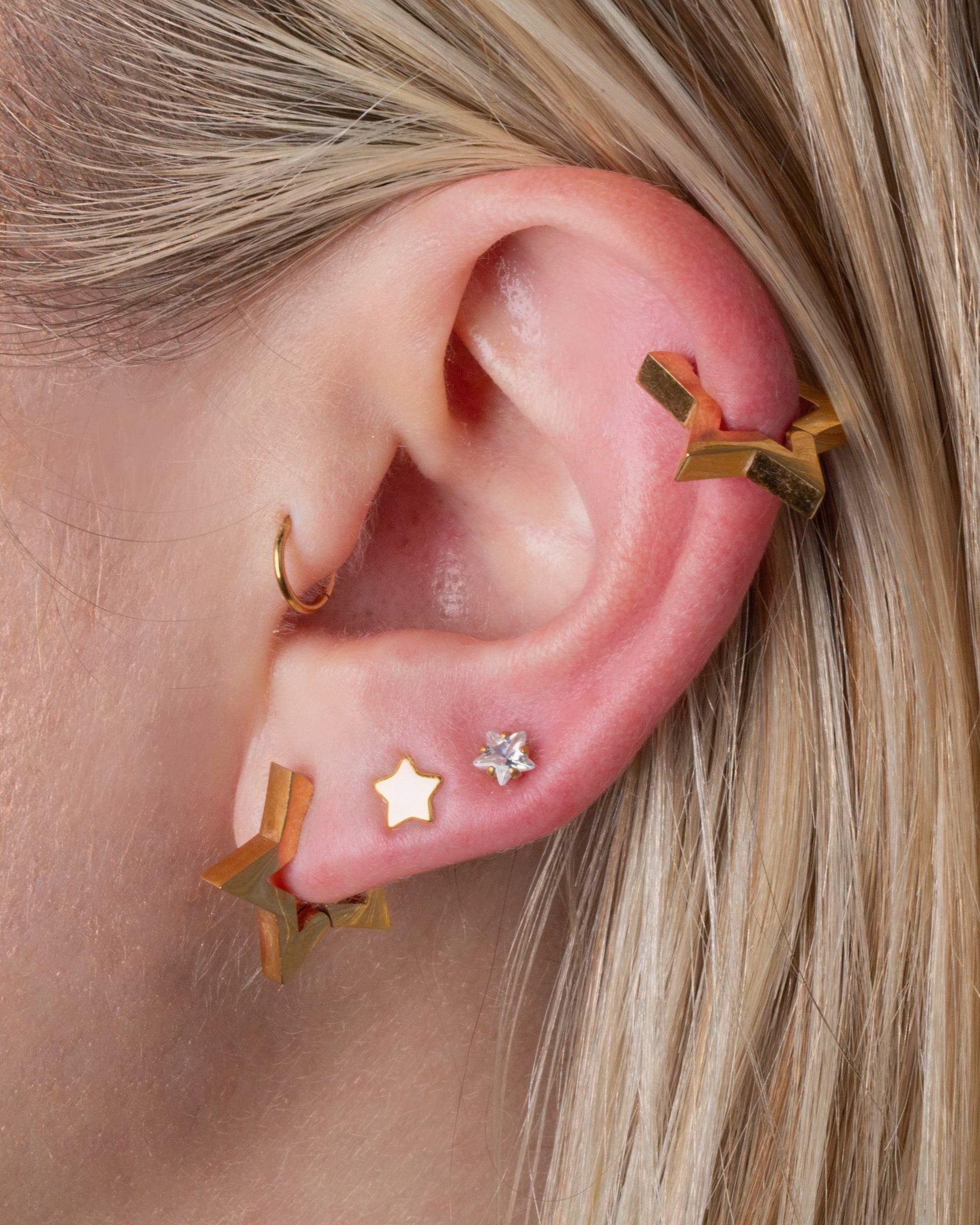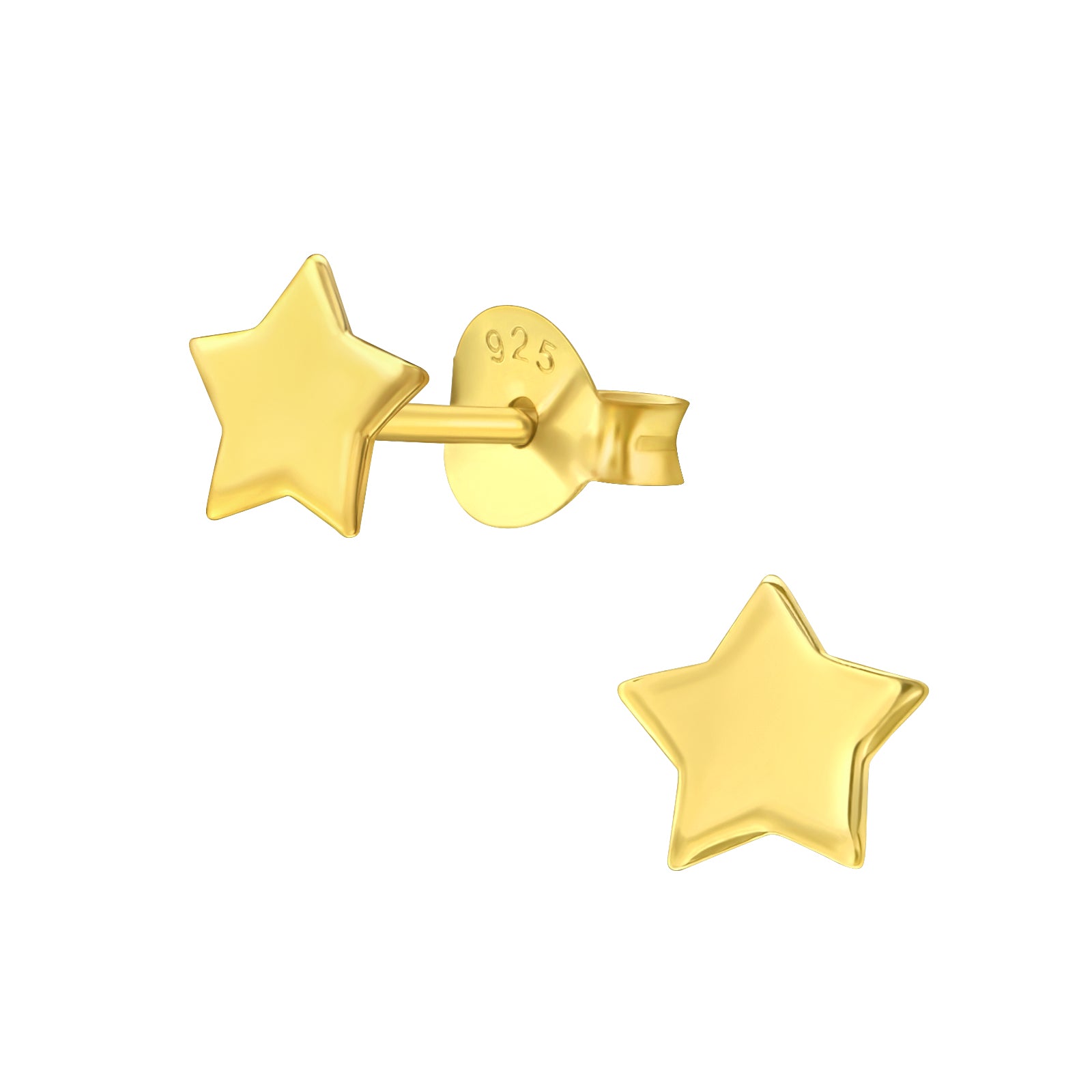 Star Shaped Stud Earrings - Pair - Gold Plated 925 Sterling Silver