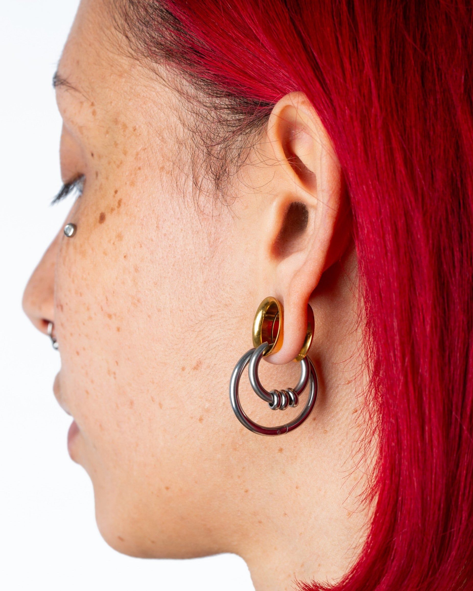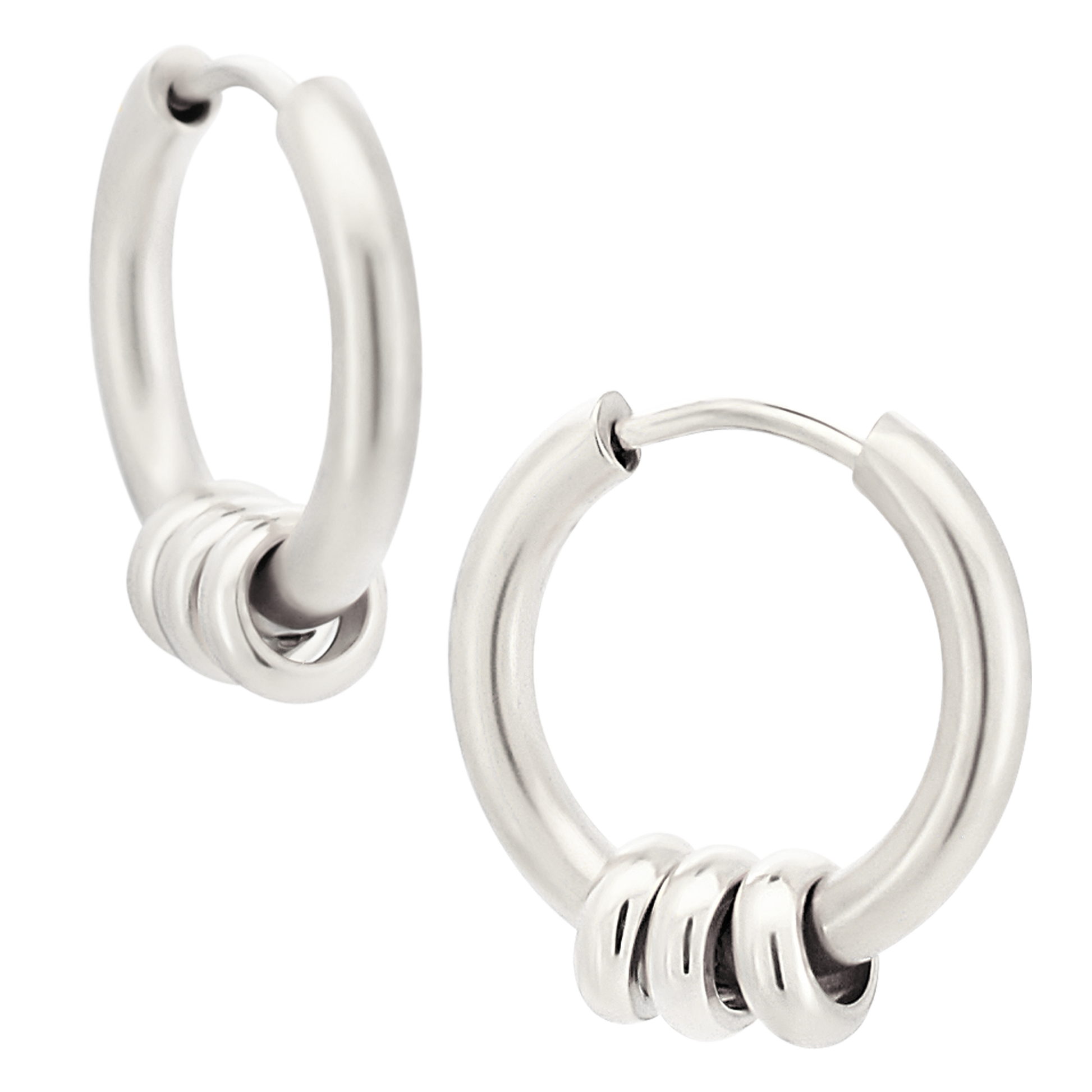 Triple Ring Huggie Hoop Earrings - Pair - 316L Stainless Steel