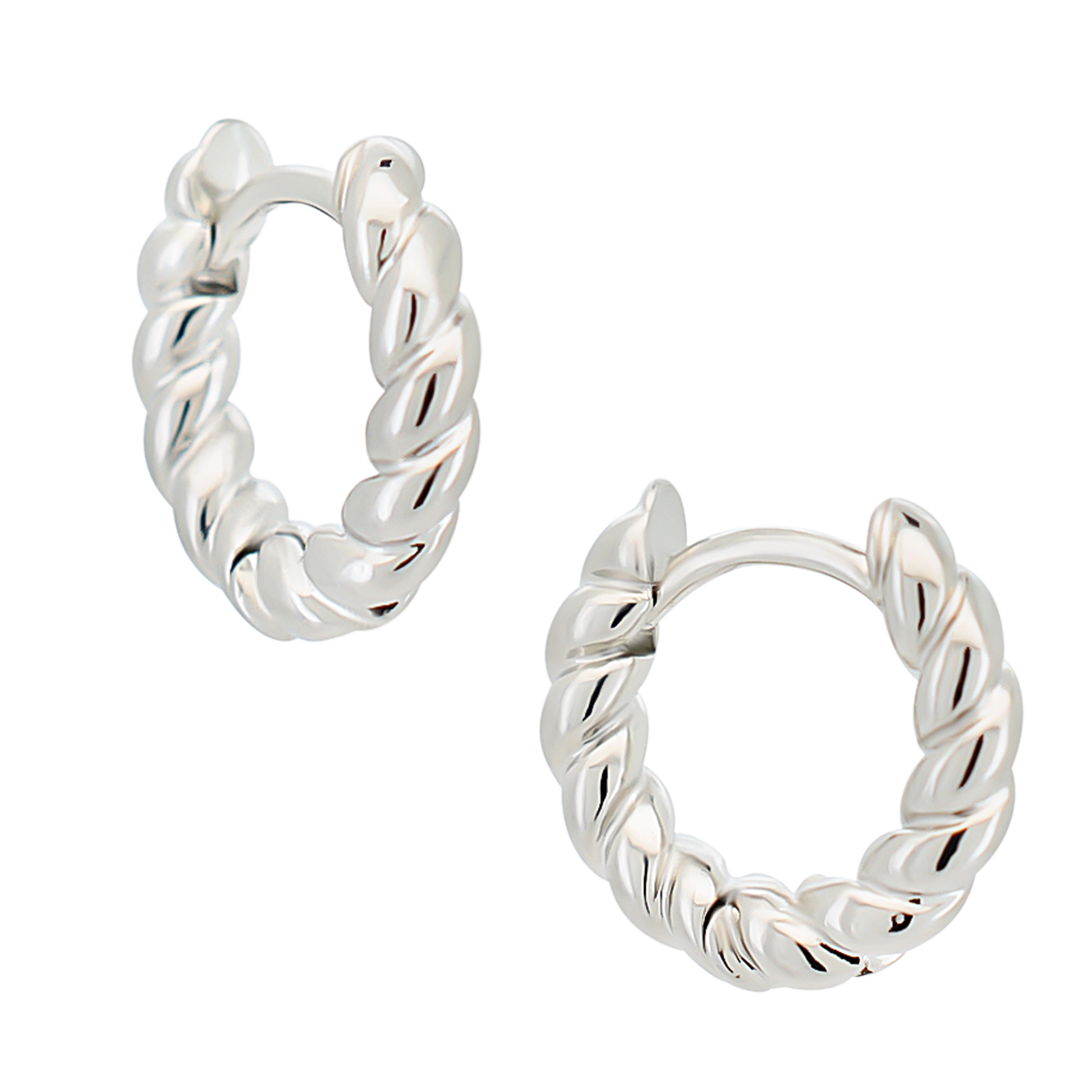 Twisted Rope Huggie Hoop Earrings - Pair - 316L Stainless Steel