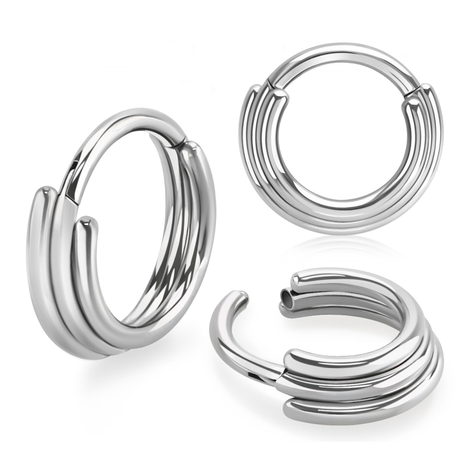 Descending Triple Stacked Hinged Segment Clicker Ring - G23 Implant Grade Titanium