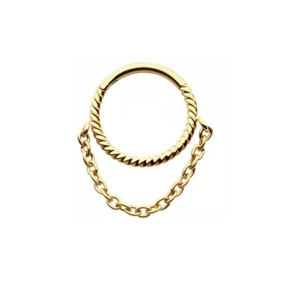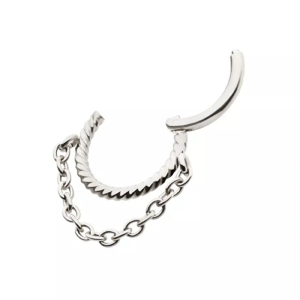 Twisted Design Front Facing Hoop with Dangling Chain Hinged Segment Ring - 316L Stainless Steel