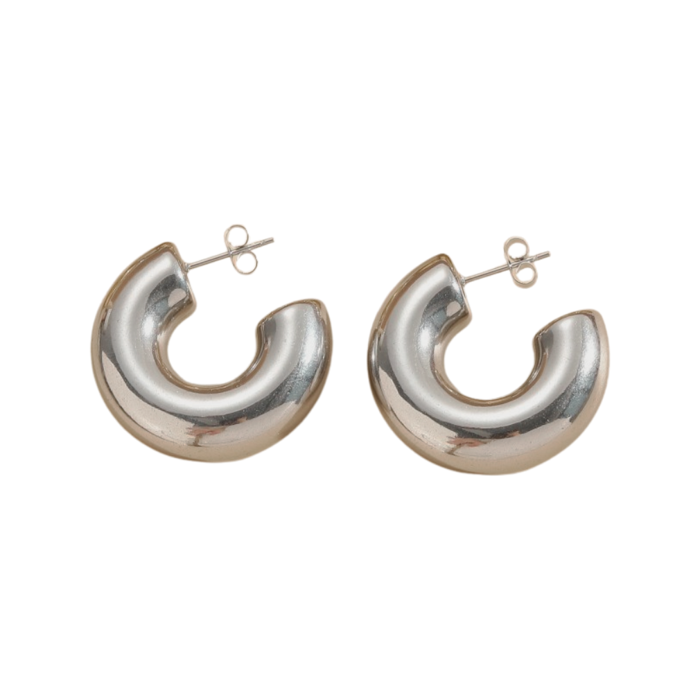 10mm Thick C-Shaped Hoop Earrings - Pair - Stainless Steel