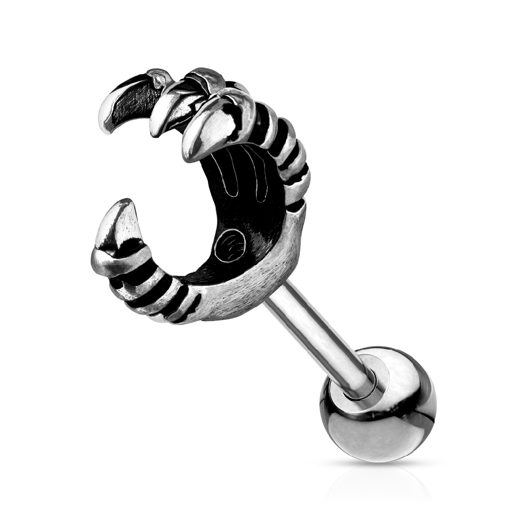 Antique Eagle Claw Cartilage Tragus Barbell Stud - 316L Stainless Steel