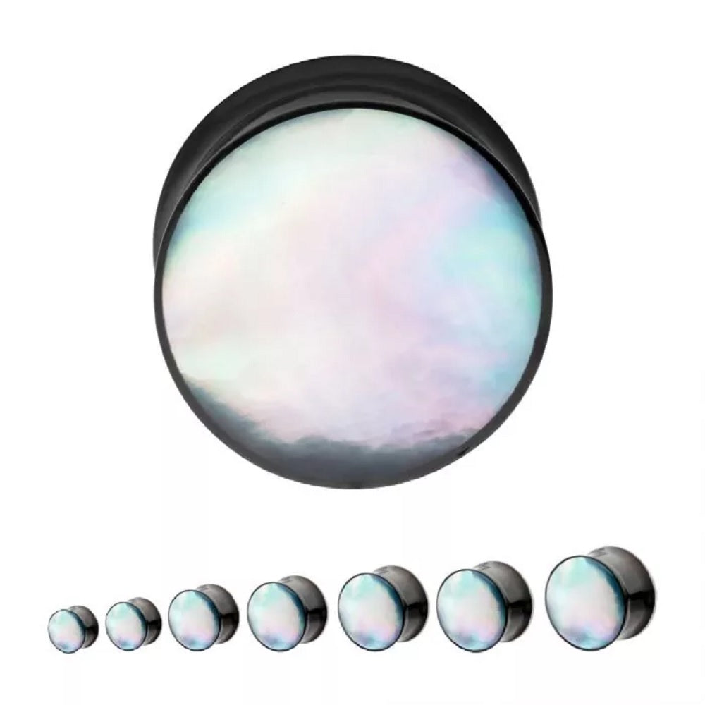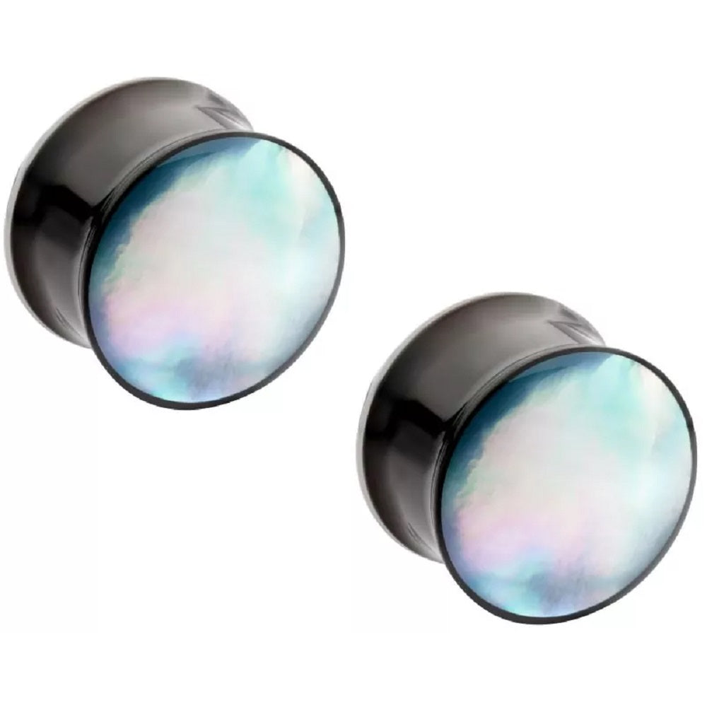 Black PVD Plated with Grey Stone Double Flared Plug Gauges - 316L Stainless Steel - Pair
