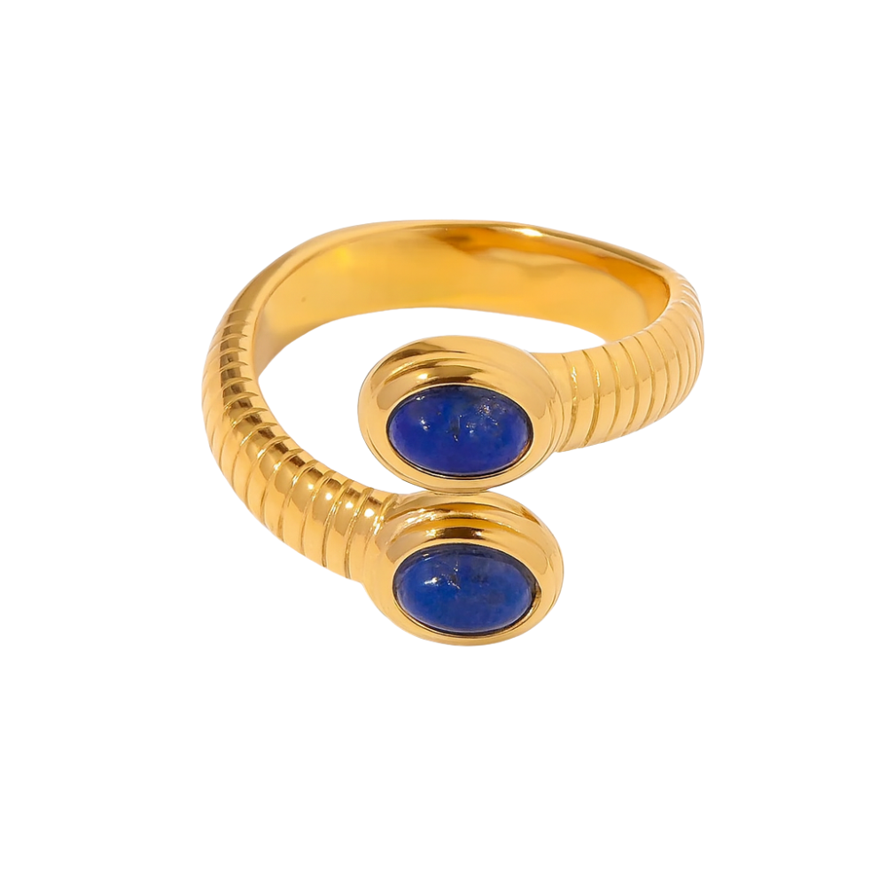 Blue Stone Wrap Ring - Gold Plated Stainless Steel