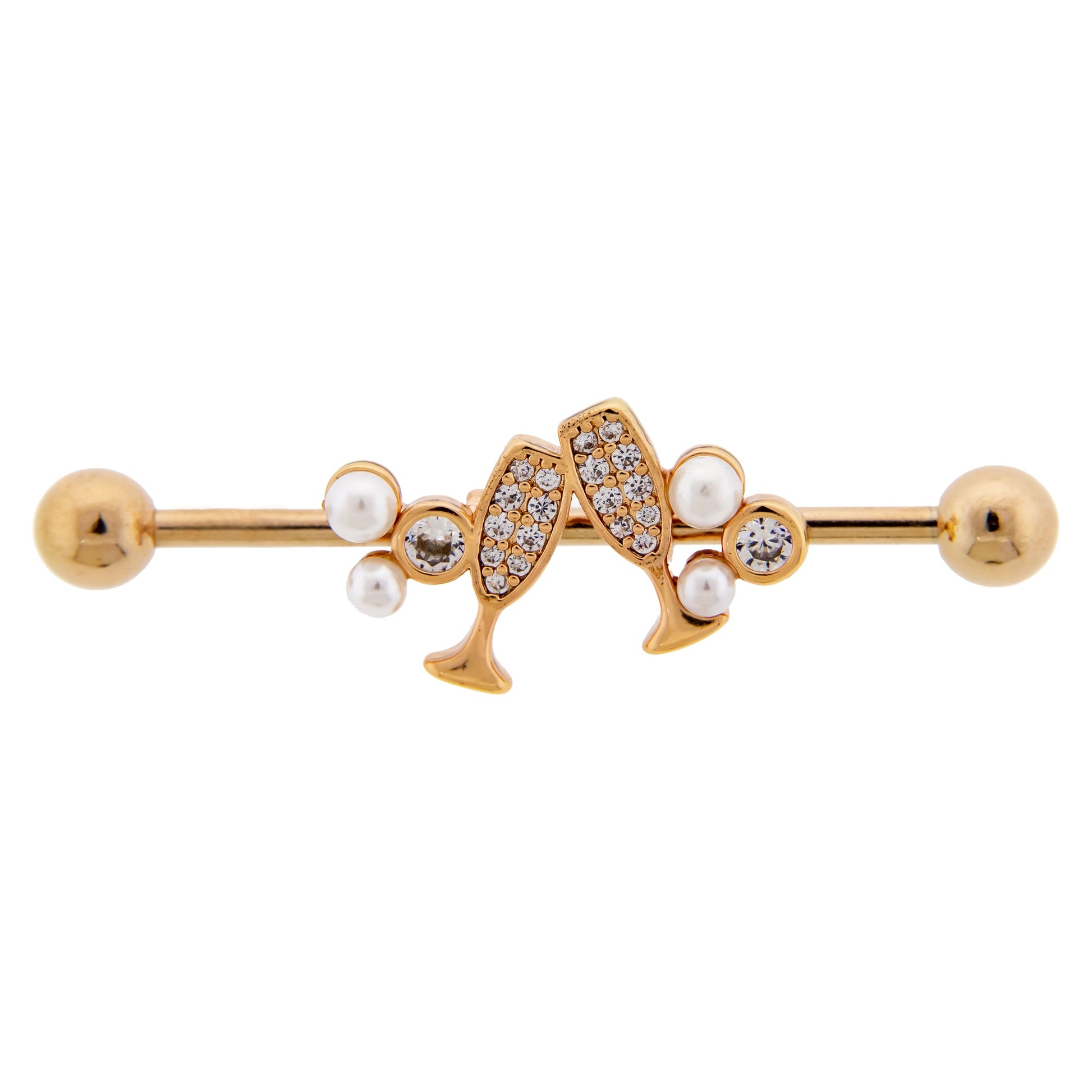 Champagne Glasses with Faux Pearl Bubbles Industrial Barbell - Rose Gold Plated 316L Stainless Steel