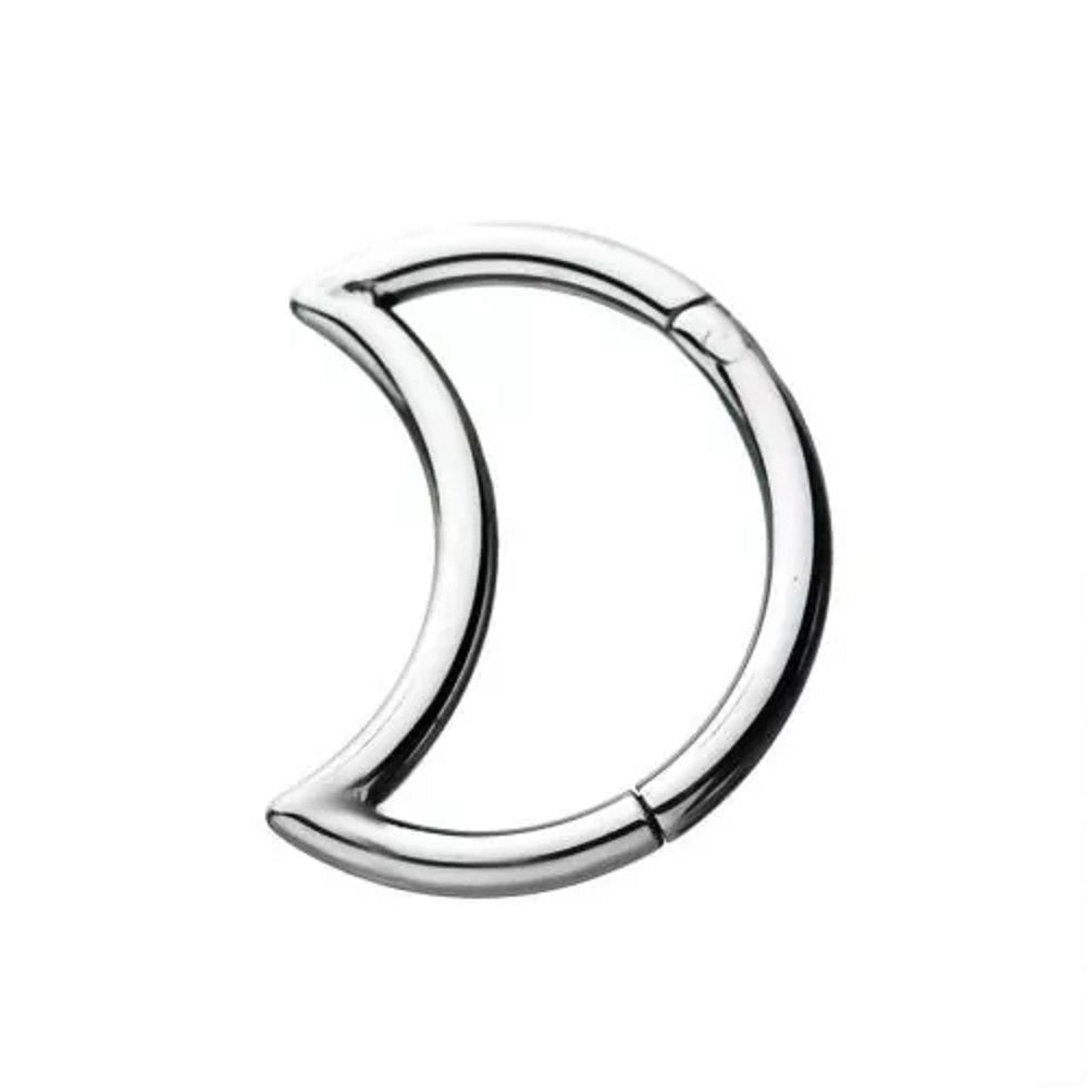 Crescent Moon Shaped Hinged Segment Ring - Stainless Steel