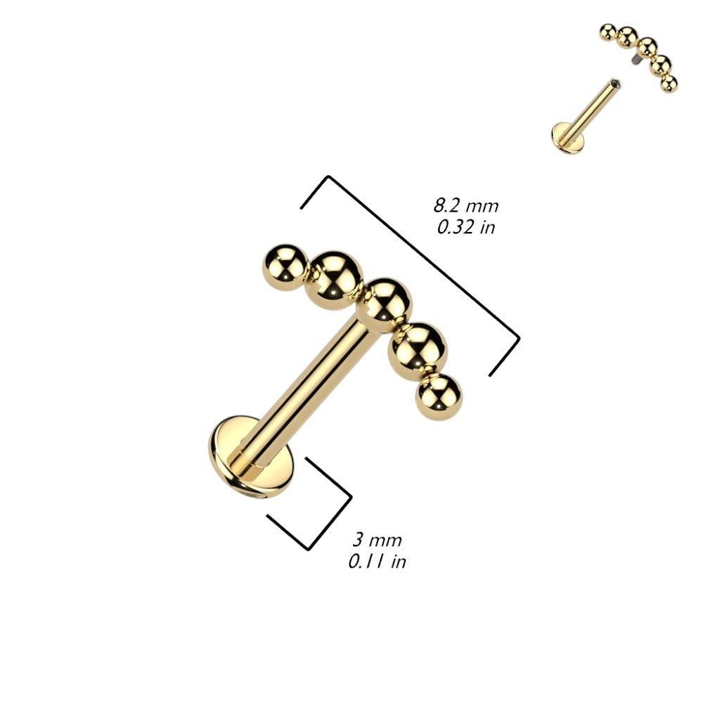Curved Beaded Ball Top Internally Threaded Stud - F136 Implant Grade Titanium