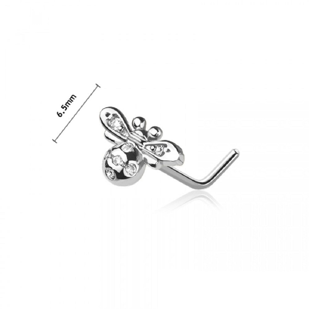 CZ Crystal Bumble Bee Top L-Bend Nose Stud - 316L Stainless Steel