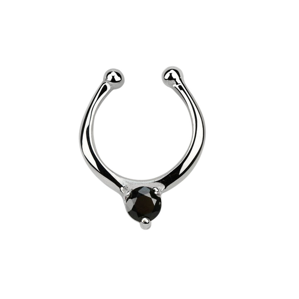 CZ Crystal Center Clip On Non-Piercing Septum Ring - Sterling Silver